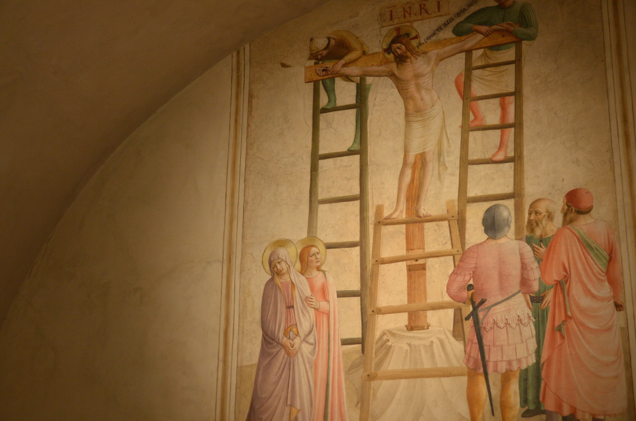 Lo primero accedimos al claustro, un gran museo donde pueden verse alguna de las obras más famosas de Fra Angelico, el protagonista de la decoración de este lugar. Primero visitamos la planta baja donde ya se pueden ver obras importantes del pintor religioso.