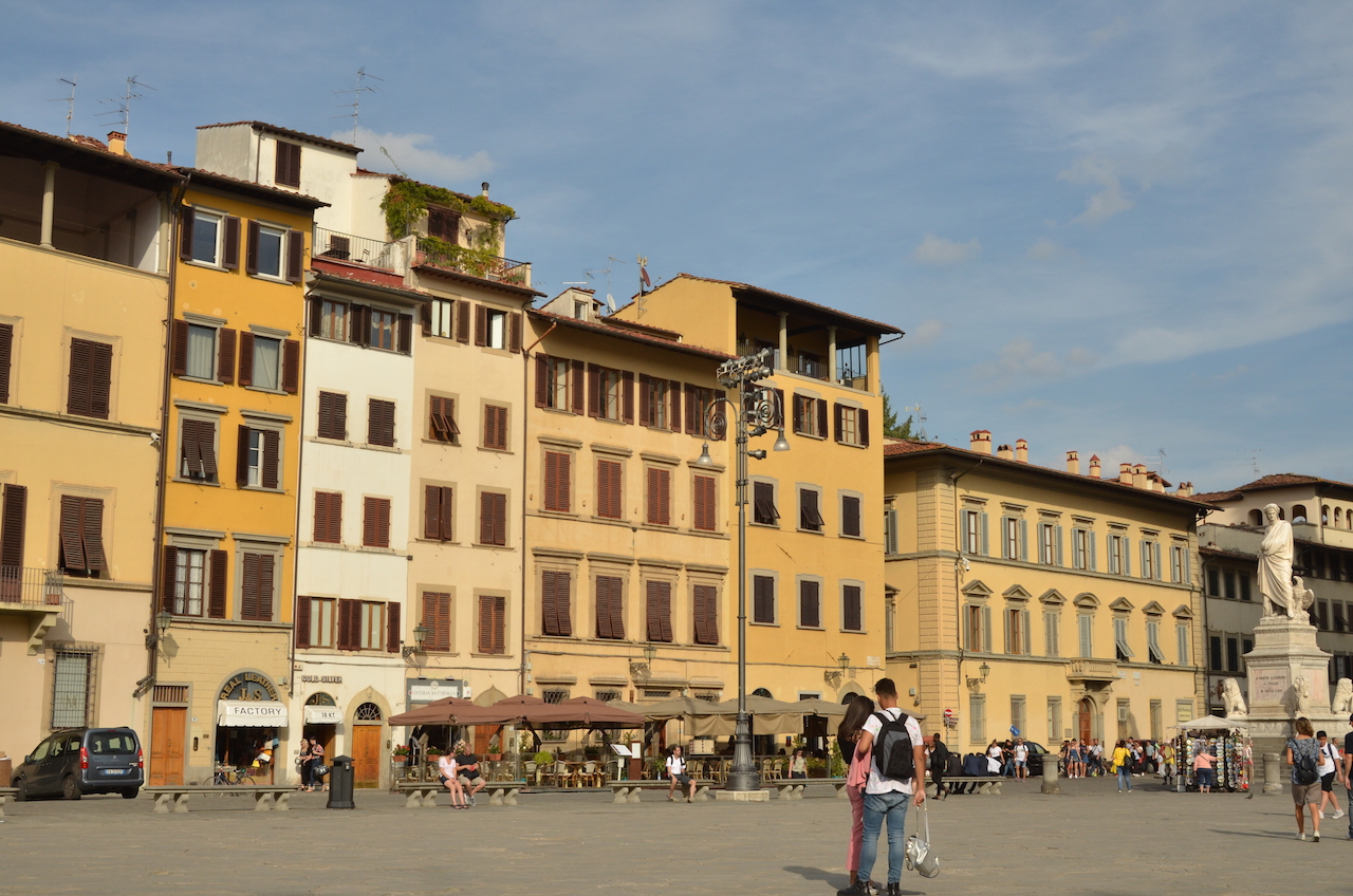 La Piazza de la Santa Croce con sus fachadas típicas y sus comercios es un buen lugar para pasar un rato. A lo largo de los años, diferentes acontecimientos se han dado lugar allí, desde torneos medievales hasta fuegos de la Inquisición… quizás alguno de los que hoy están enterrados en el interior de la iglesia, fueron candidatos a las llamas…