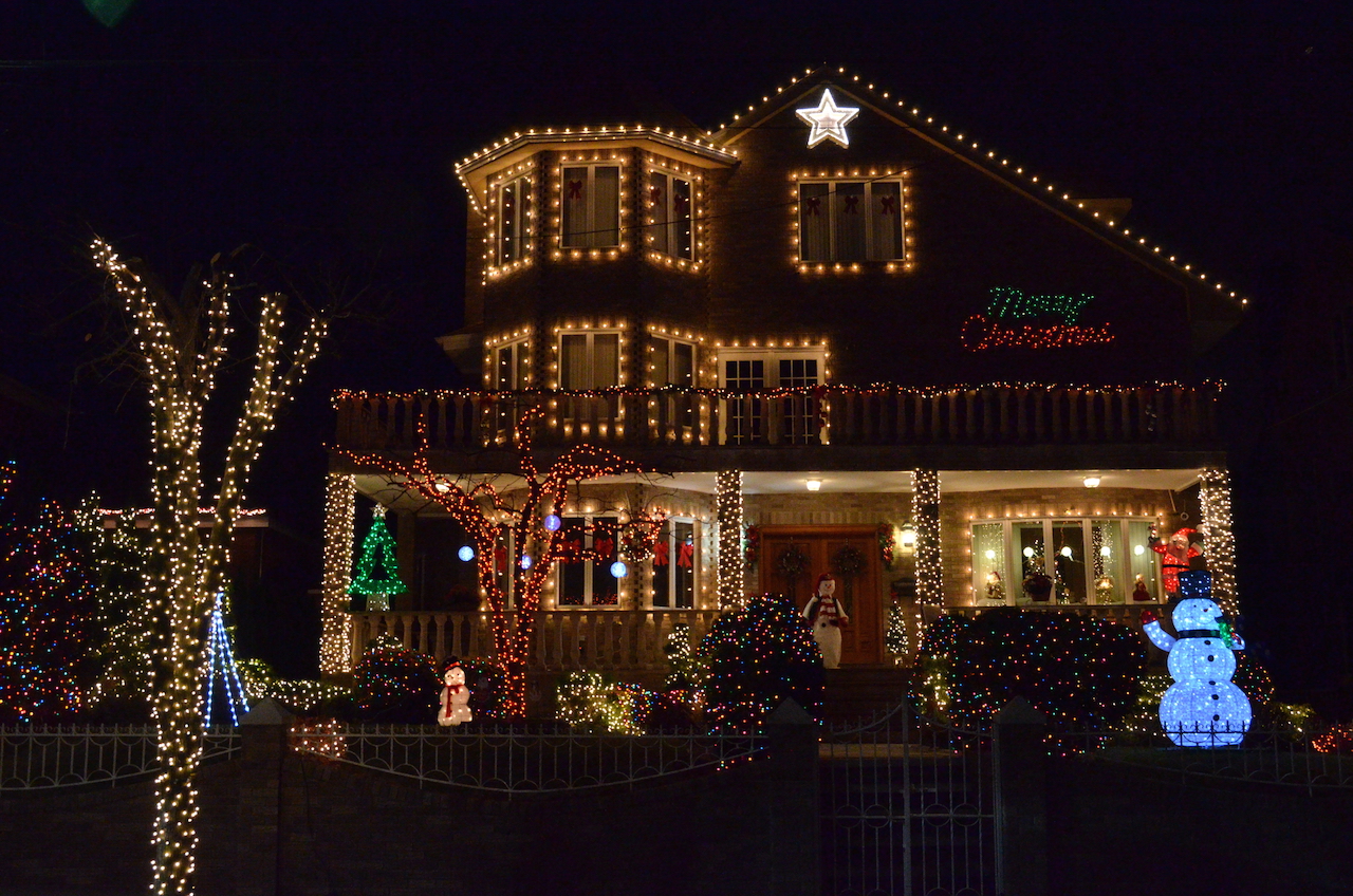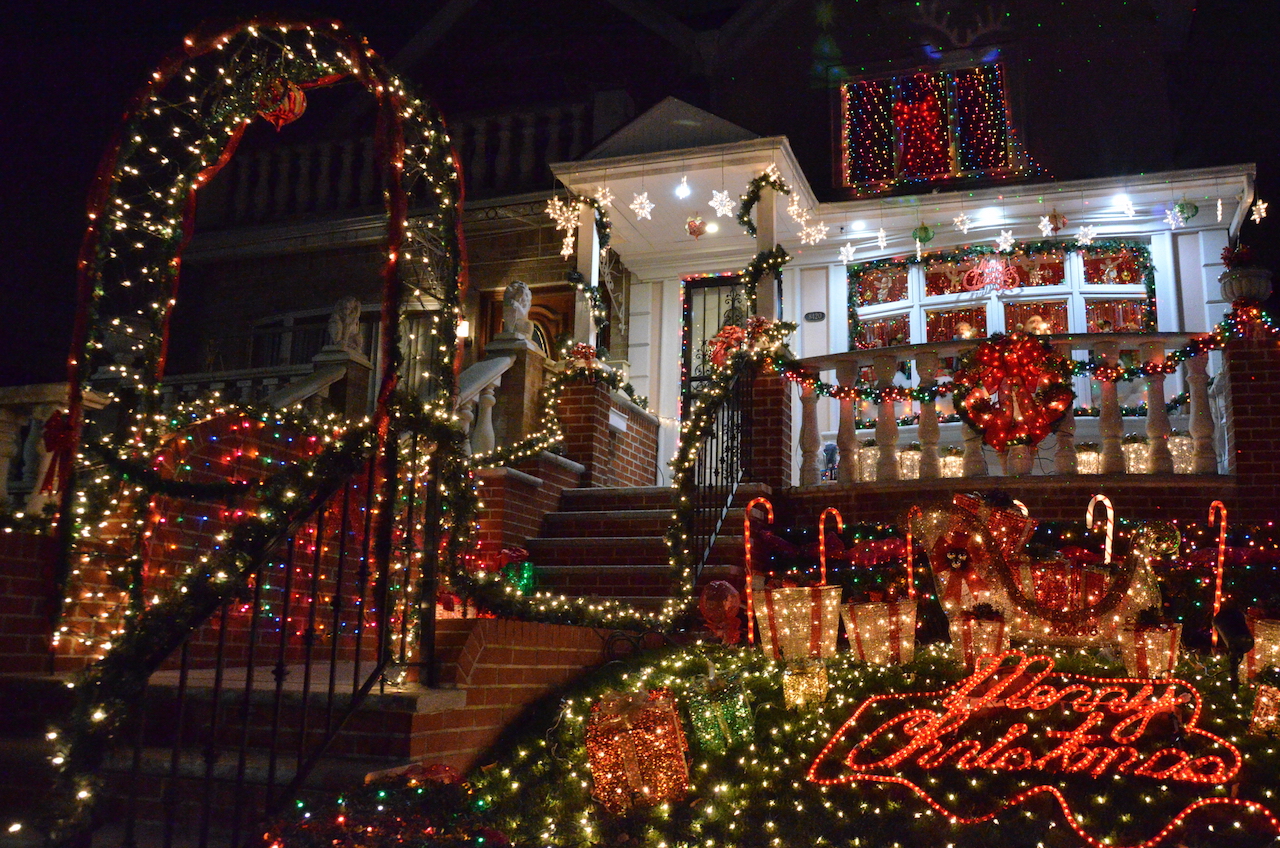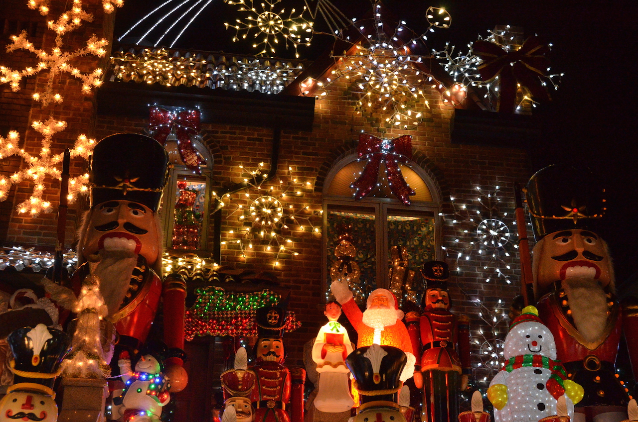 Esta atracción no es otra que el barrio de Dyker Heights. Se trata de un barrio residencial de Brooklyn en el que cada año cuando llega la época navideña se llena de luces y decoración, pero no una decoración cualquiera, noooooo. Cualquier cosa que puedas imaginar se quedará corta jajaja. Las casas son cubiertas con luces y los jardines se llenan de figuras, algunas incluso con movimiento!!!!
