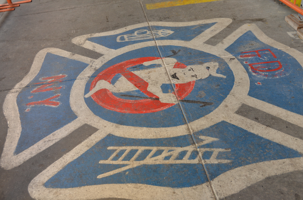 Una de las localizaciones de cine más famosas que podemos encontrar en Tribeca es el Cuartel de los Cazafantasmas, aunque en el momento de nuestra visita estaba totalmente en obras el edificio, aún así en el suelo se puede ver de lo que estamos hablando…