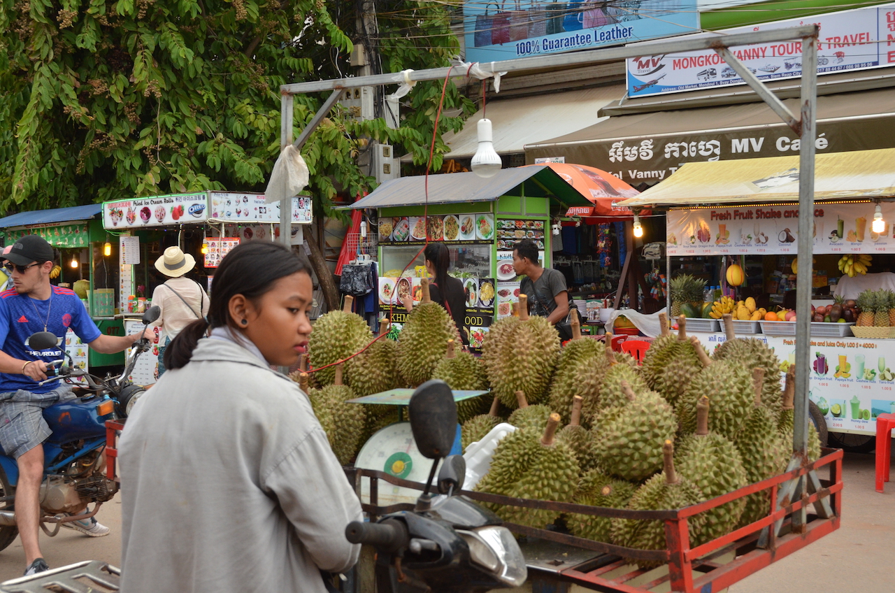 Enseguida descubrimos a los vendedores de Durian, no había nada más que seguir el rastro del olor jejeje, madre mía que mal que huele esa fruta, no me extraña que la prohiban en transportes públicos y en muchos hoteles. ¿Creéis que la probamos durante nuestro viaje? La incógnita quedará resuelta, lo prometo.