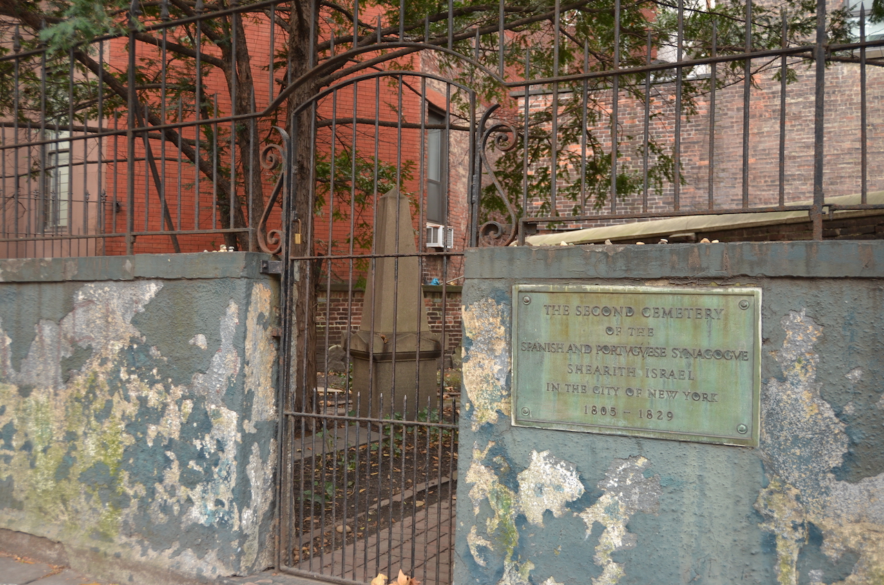 Ya casi en la esquina con la 6th Avenida nos sorprende este pequeño cementerio judío, el Segundo Cementerio de la Sinagoga Española y Portuguesa, es uno de los tres que pertenecían a la sinagoga.