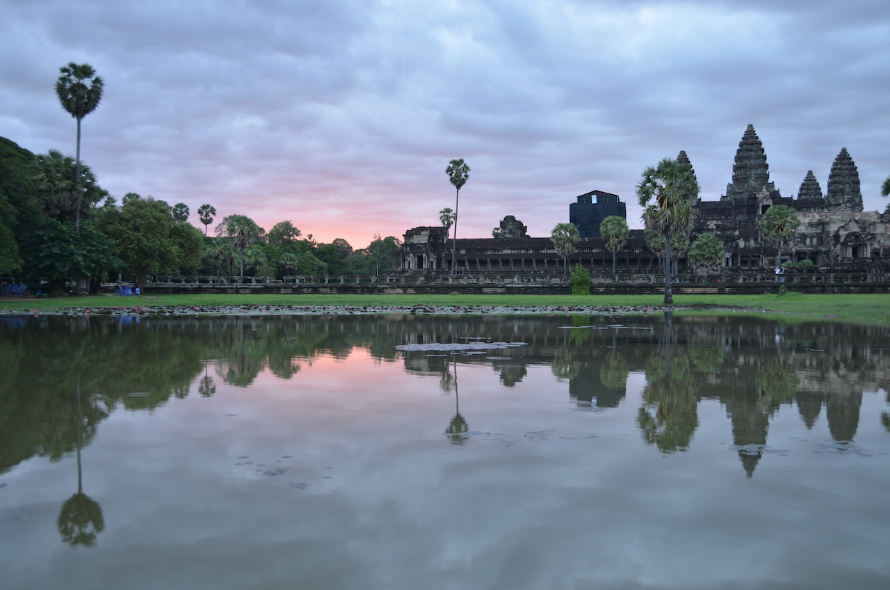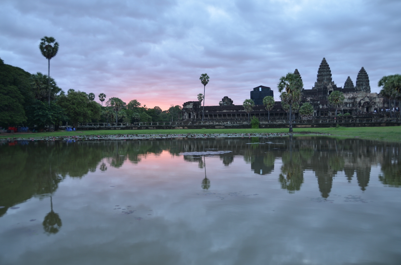 Había bastantes nubes, pero poco a poco se dejó ver un tímido amanecer que hizo que mereciese la pena la espera, el dolor de piernas por estar allí agachada y todooooo, me encantó ese momento, ver esa tonalidad rosa aparecer detrás del templo fue mágico!!