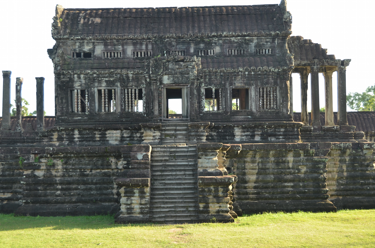 Junto al puente se encuentran las Bibliotecas, de las que se cree que salieron los primeros escritos sobre Angkor.