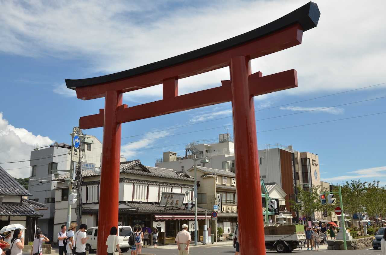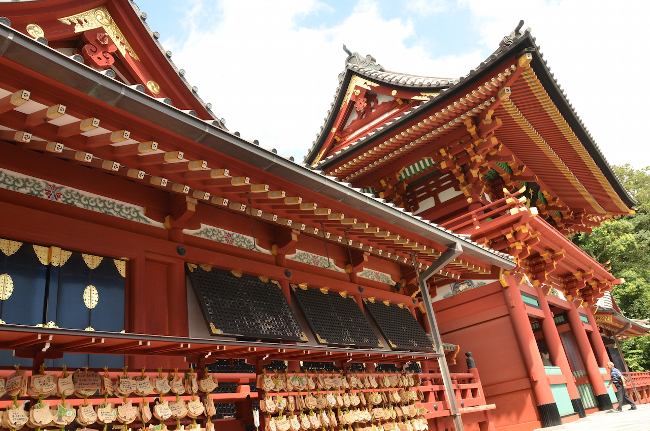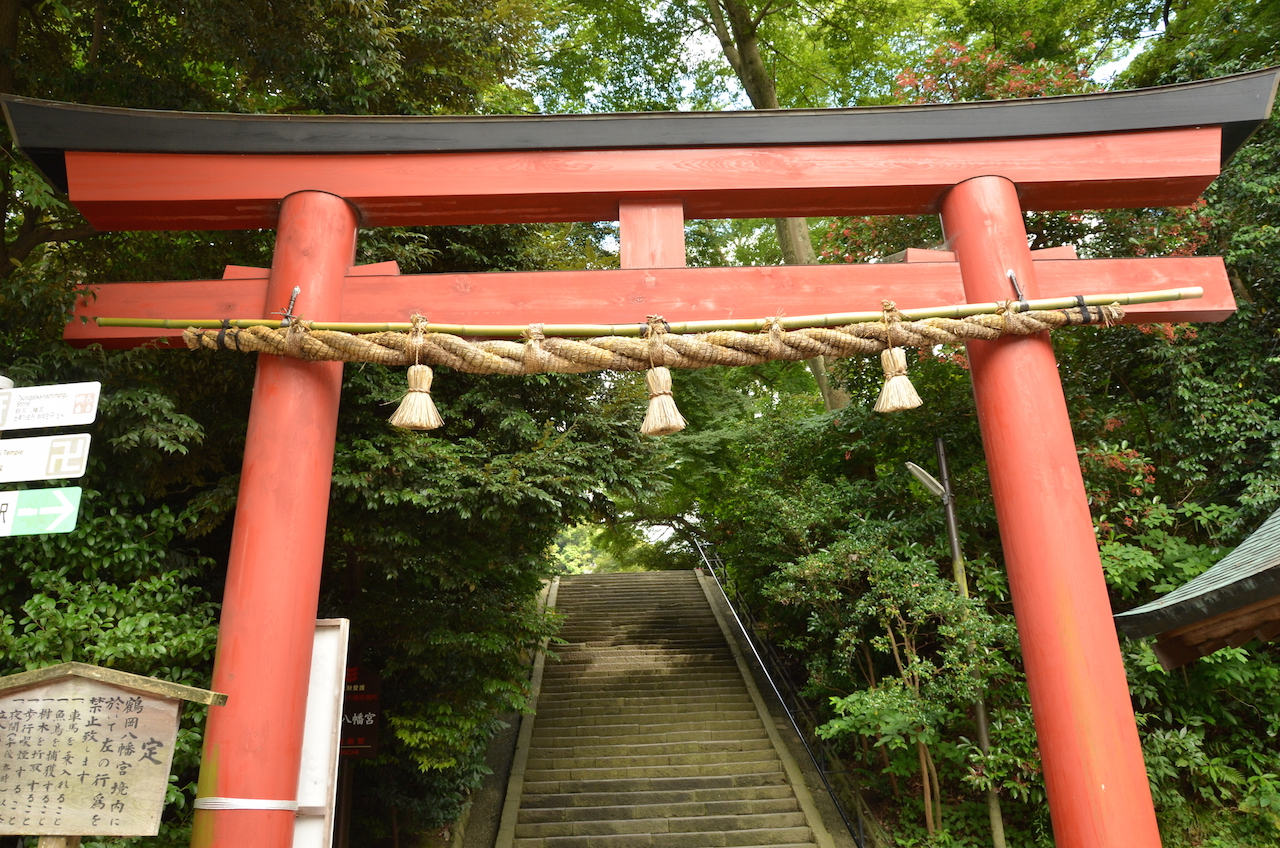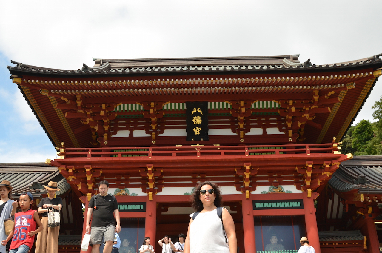 Un gran torii rojo nos indica que hemos llegado al Santuario Sintoísta Tsurgaoka Hachiman-gu, el santuario más importante de Kamakura. Su construcción es del siglo XII.