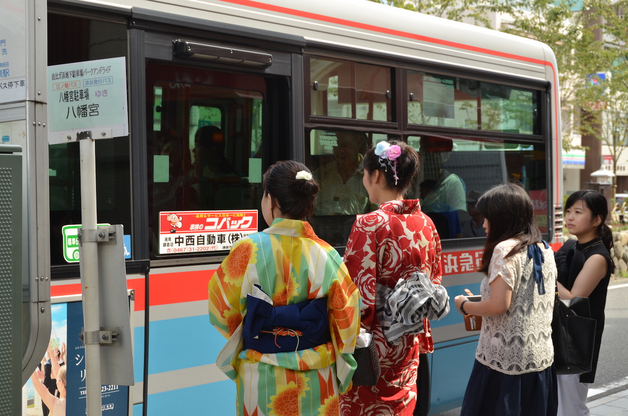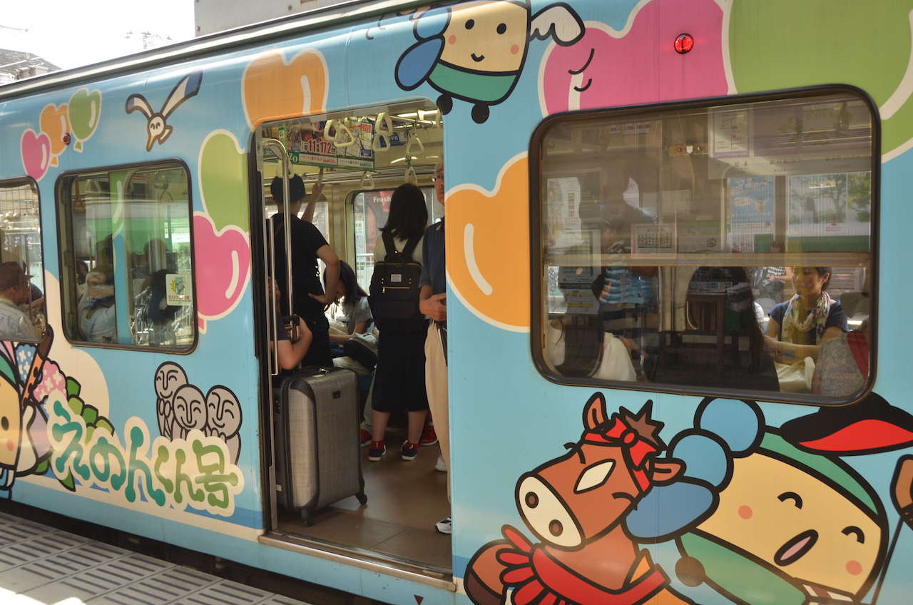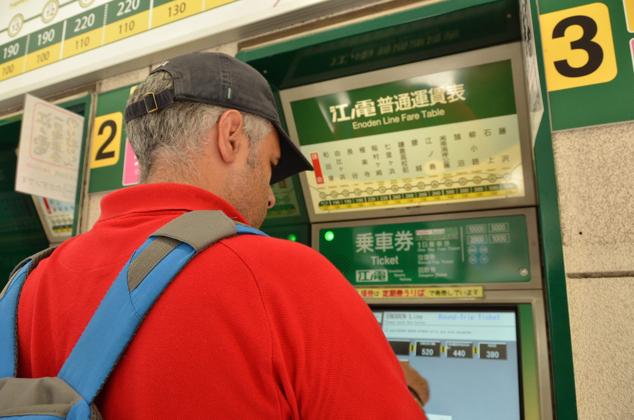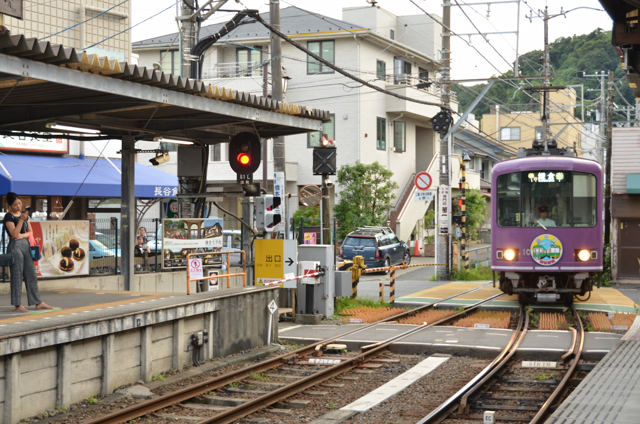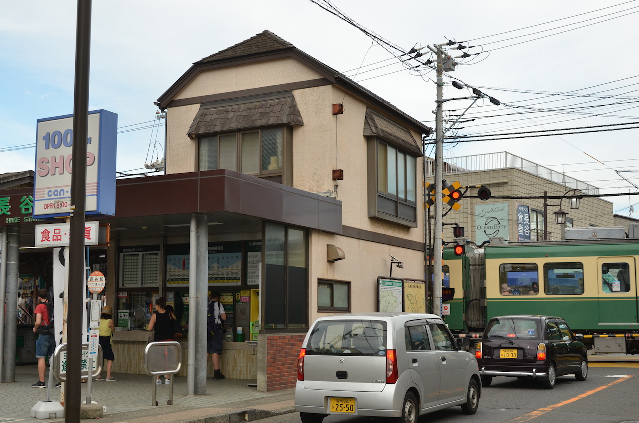 Seguimos caminando un poco hasta llegar a la estación de Kamakura donde sacamos un ticket, por menos de 200 yenes, que nos lleva hasta la estación de Hase, allí tomamos el tren enoshima de la enoden line (tres paradas hasta Hase), con unos trenes que a mí me parecieron muy «cuquis».
