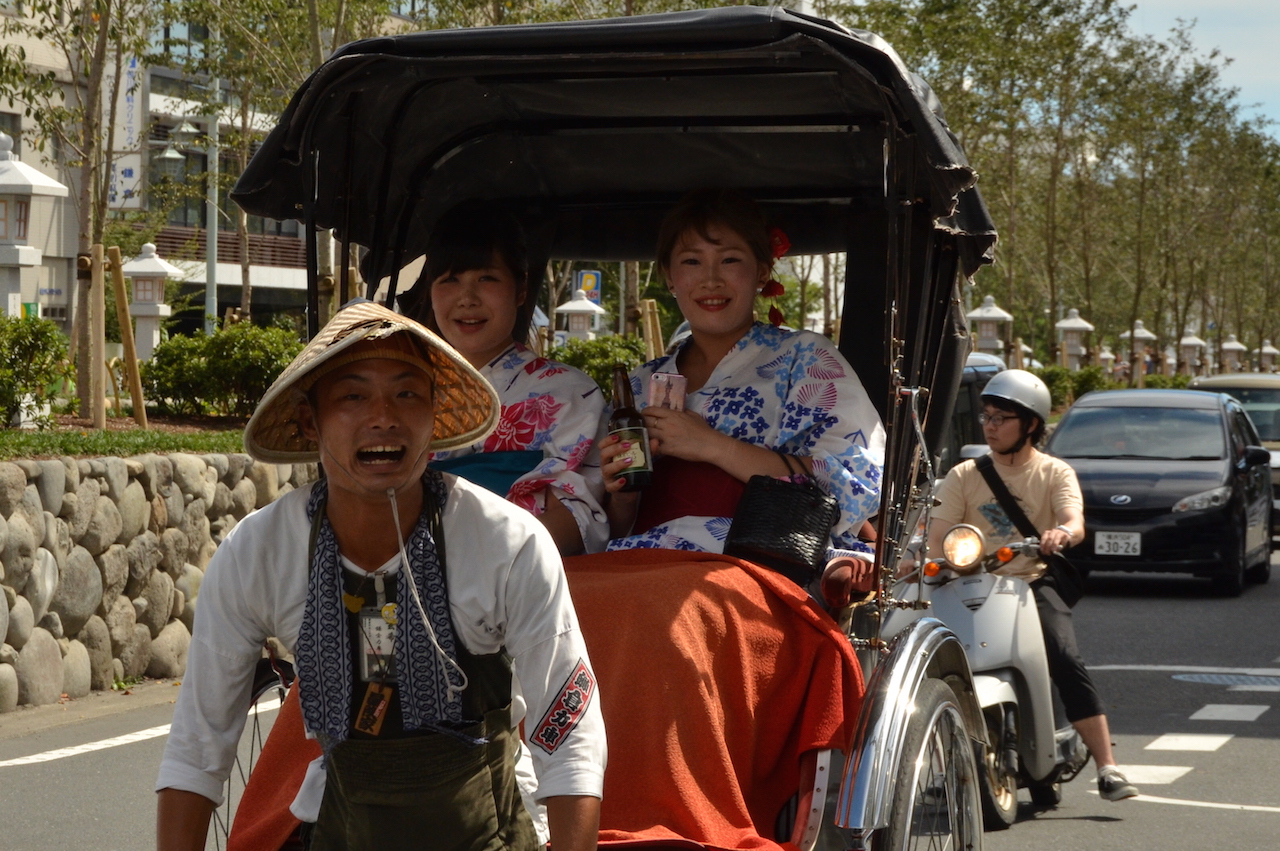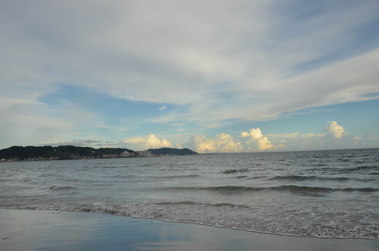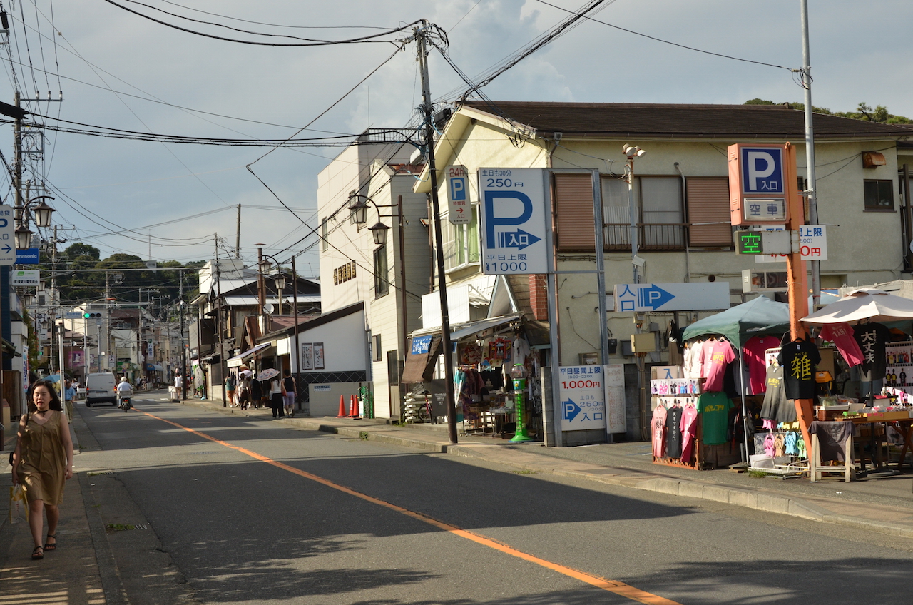 De nuevo vamos de camino hacia la estación, pero decidimos ir hasta la zona de la playa. Nos sorprenden los carteles que vamos encontrando y que indican vías de evacuación ante un posible tsunami, en Japón todavía está muy reciente la catástrofe de 2011.