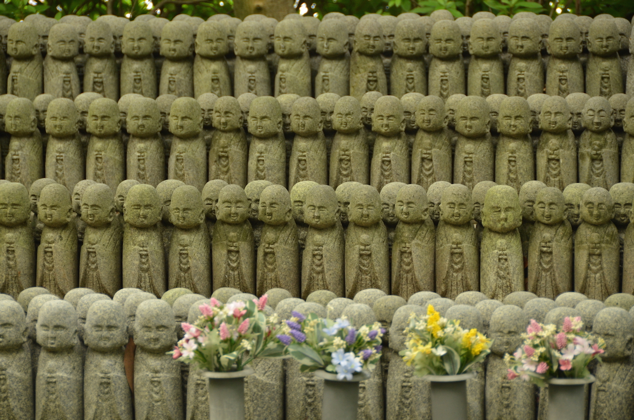 De las cosas que más me gustaron de este templo fue la zona dedicada a los Jizo, el dios guardián de los niños y que, como ya había comentado en alguna otra ocasión, estas figuras representan a los niños no nacidos o fallecidos prematuramente. No deja de sorprenderme la cantidad y la devoción que les tienen los japoneses, aunque reconozco que se mezcla también con algo de tristeza por lo que representa.