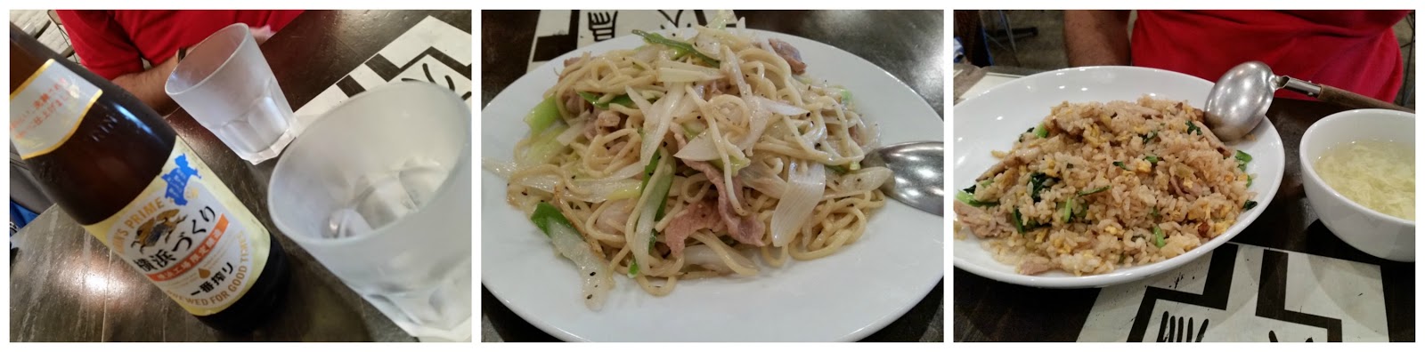 En esta calle encontramos un restaurante donde comimos un plato de noodles y un plato de arroz acompañados de dos cervezas Kirin, quizás no fuese la mejor comida que hicimos en Japón, pero estaba bastante buena.