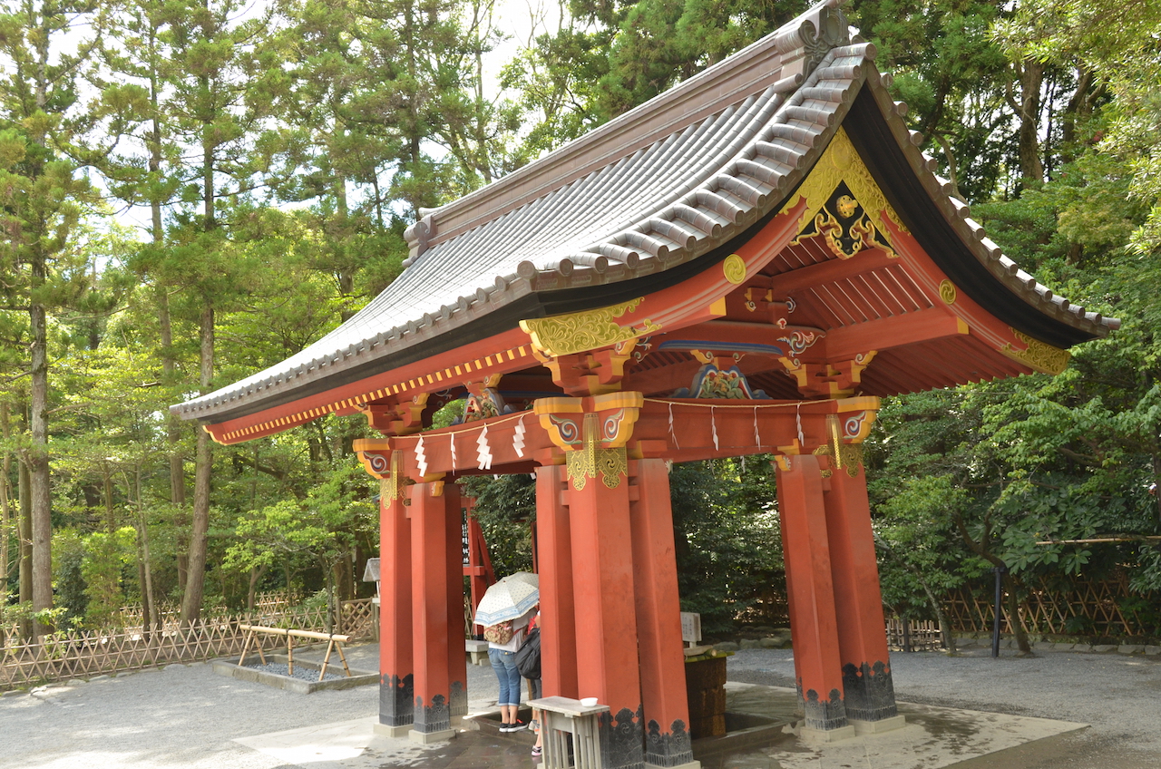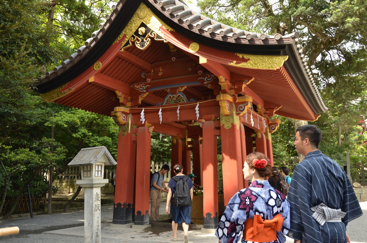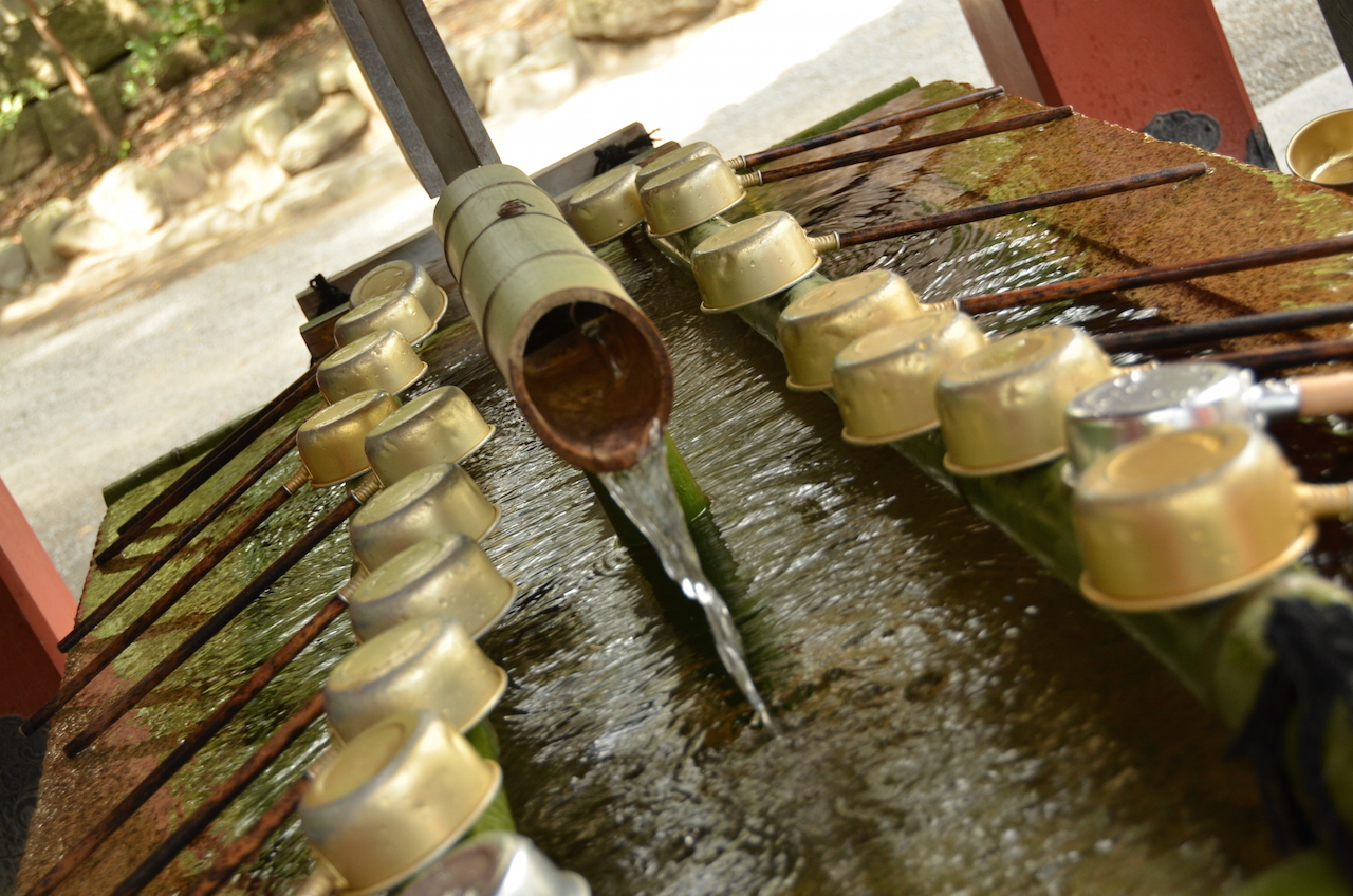 Así que una vez visto, descendemos por una escalinata desde la que hay unas vistas bonitas no sólo de la calle principal, si no del propio templo. Llegamos hasta la fuente que se utiliza para purificarse antes de la entrada al santuario, nosotros esta vez utilizamos una que se encontraba en uno de los laterales por los que entramos.