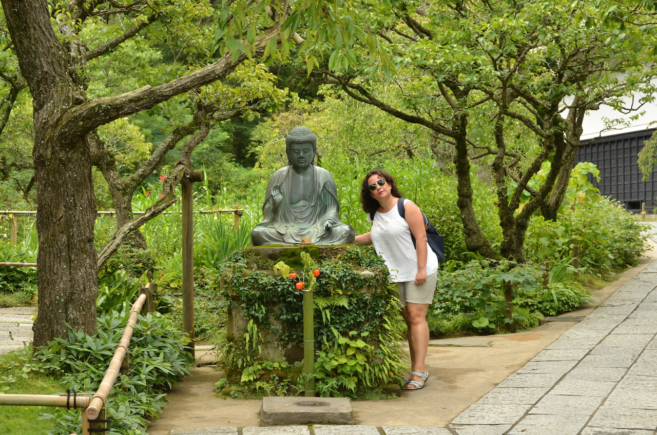 El templo Kotoku-in, es uno de los templos más visitados de Kamakura porque es el que alberga la estatua de bronce de Amida Buda,Daitbutsu, la imagen de la ciudad. Una escultura de más de 11 metros de altura y que por muchas fotos que hayas visto, te deja con la boca abierta cuando estás delante de ella. No sé cómo me lo había imaginado, pero desde luego que me sorprendió muchísimo, me encantó.