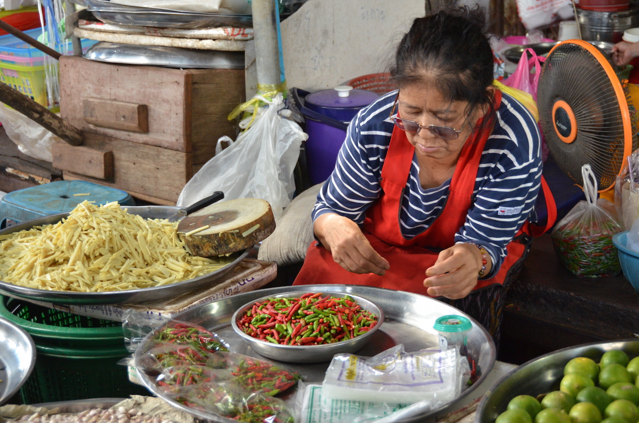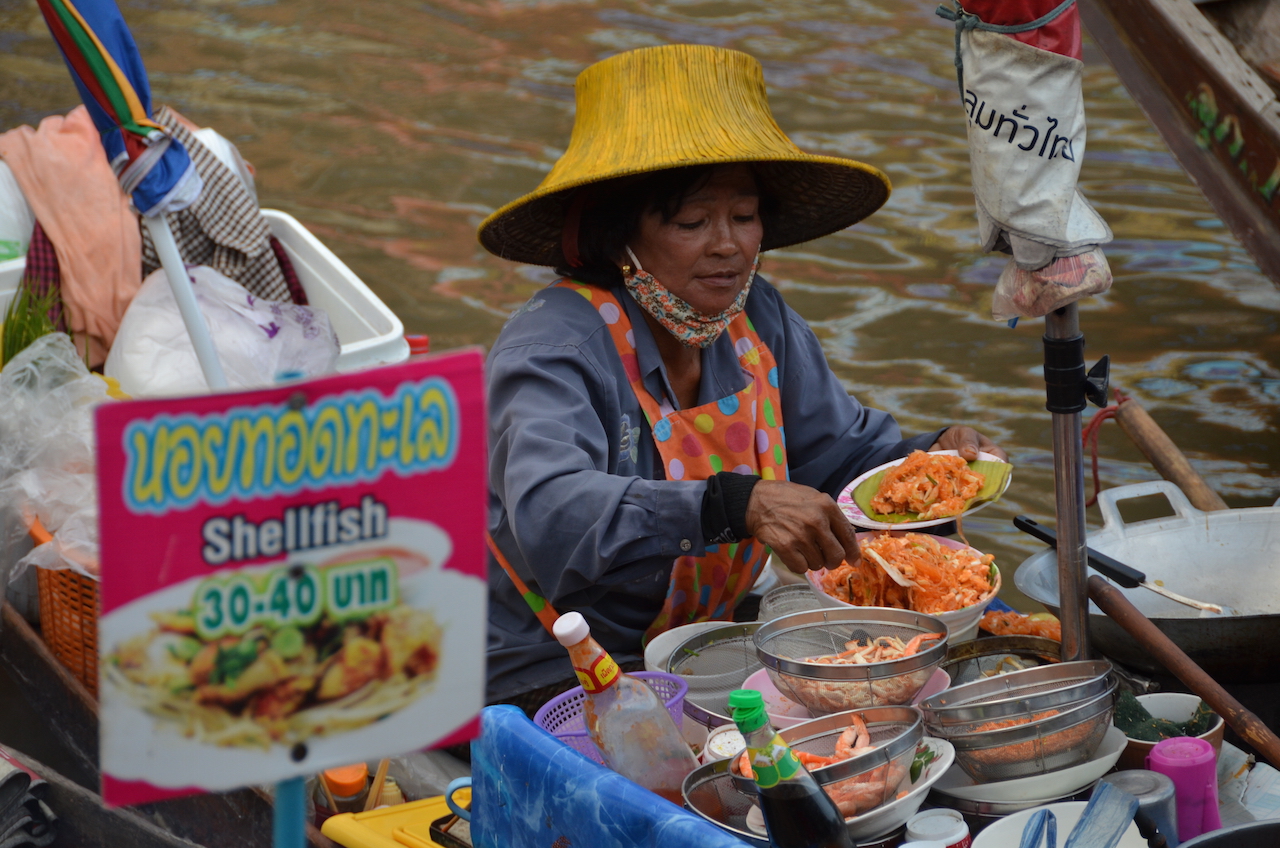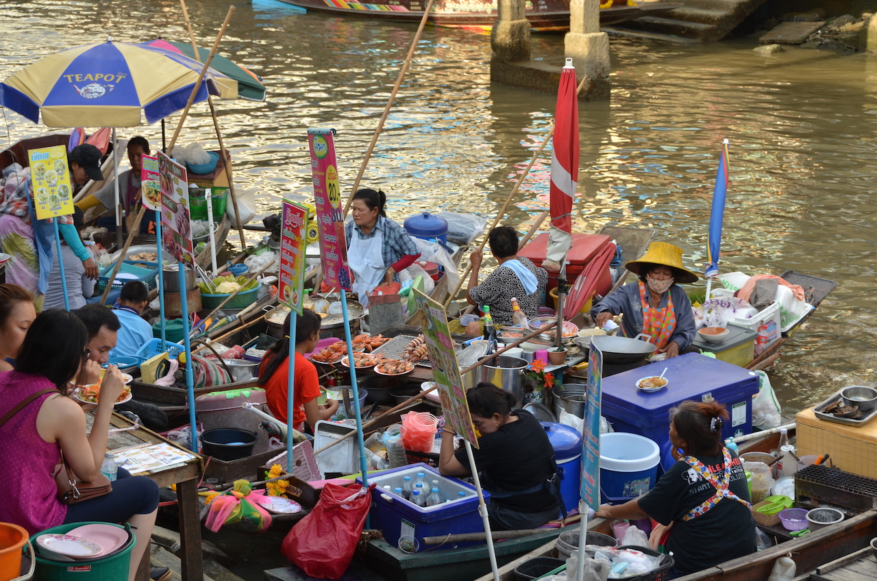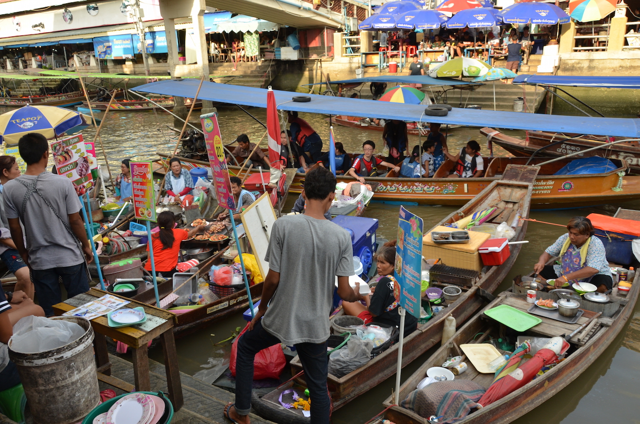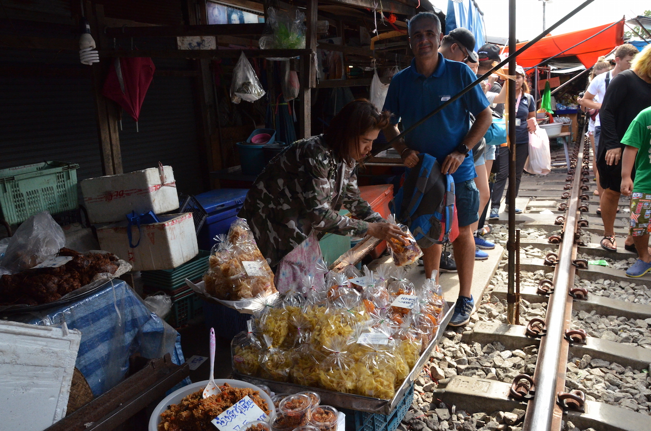 Nosotros decidimos ir a éste porque es menos turístico y más auténtico, un mercado al que acuden los locales en busca de buena comida, también dicen que los productos que ofrecen en este mercado son más baratos que en el famoso Damnoen Saduak.