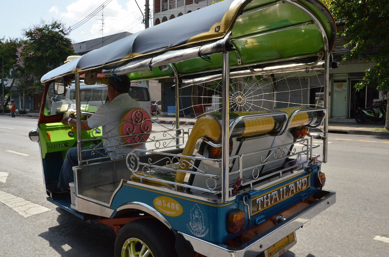 Negociamos que por 100 THB nos llevaba hasta el mercado, eso sí, con una parada de 10 minutos en «la tienda de un amigo». Esto funciona así, te llevan a una tarifa más barata pero a cambio paras en una tienda por si cae algo. Era una tienda de trajes y nosotros no teníamos intención de hacernos ninguno, pero aún así el conductor de tuk tuk accedió. En la tienda estuvimos menos de 10 minutos, nos atendieron y percibieron que no éramos unos clientes interesados en sus telas, así que con las mismas salimos y volvimos a montarnos en el tuk tuk, al menos fue un momento un tanto divertido.