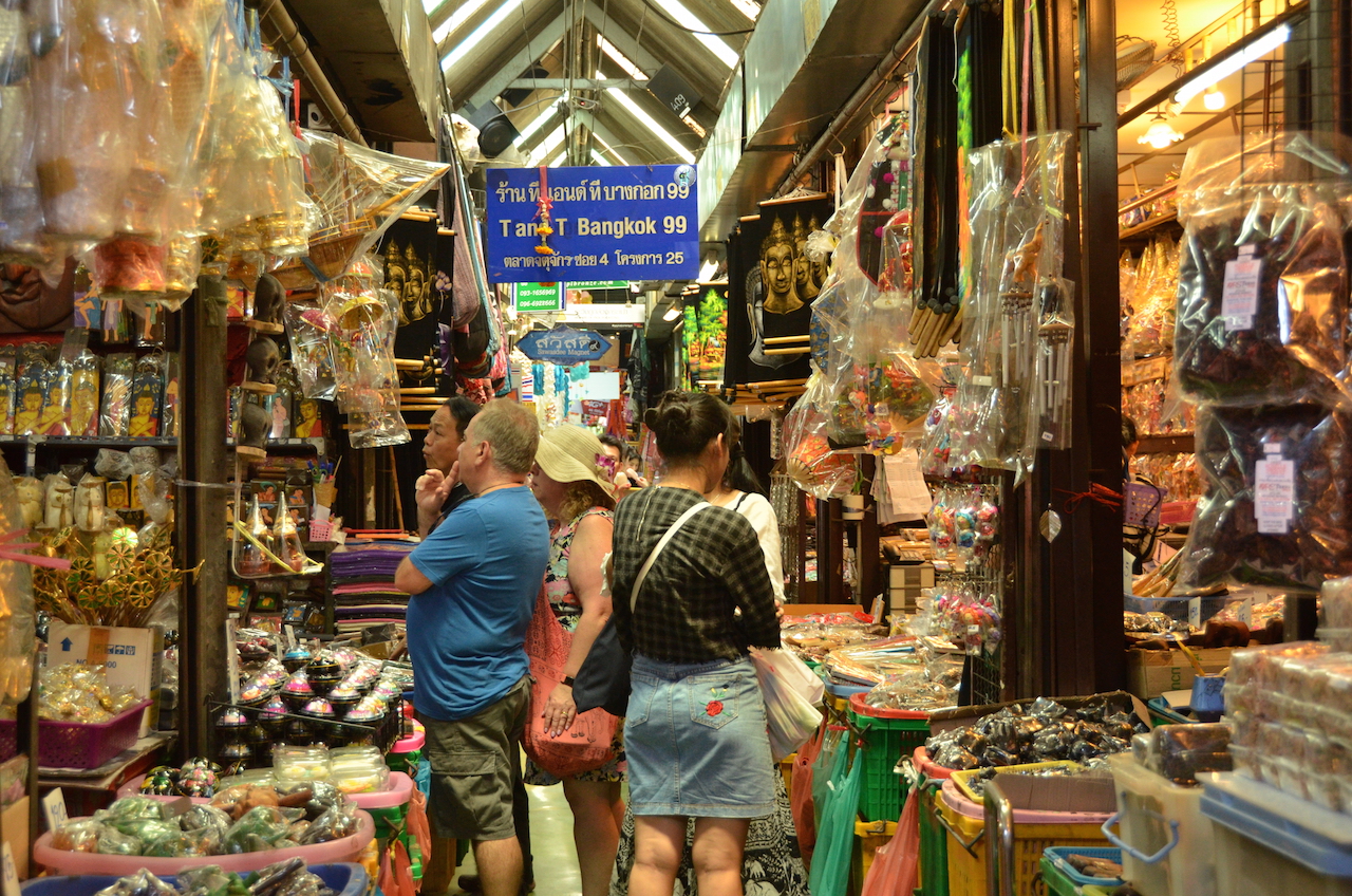 El mercado de Chatuchak es el mercado más grande de toda Tailandia y uno de los más grandes de Asia, en él pueden encontrarse más de 15.000 puestos de todo lo que puedas imaginar. Están divididos por secciones y, como nosotros no disponíamos de todo el día para invertirlo aquí, decidimos buscar algún souvenir de recuerdo, dar un paseo por los puestos de productos más exóticos y dedicar un rato a la zona de comida que es algo que nos gusta en todos los mercados que visitamos.