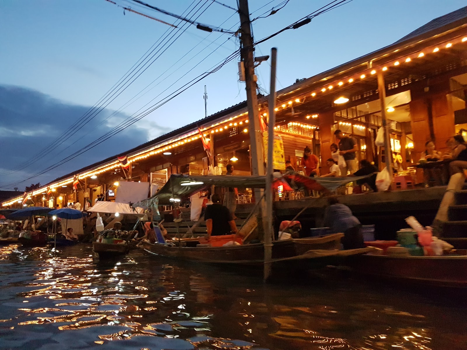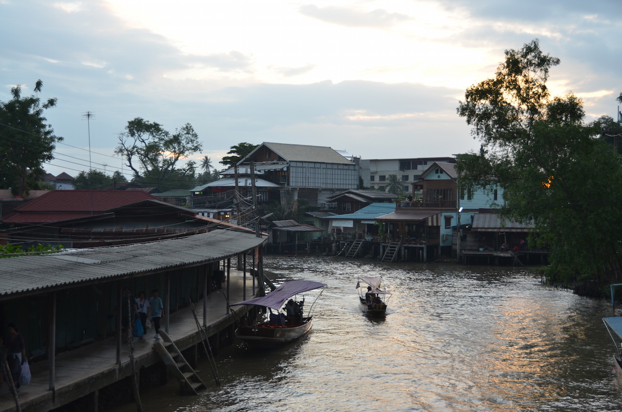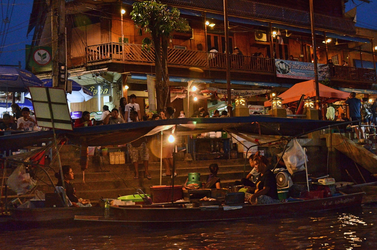 Antes de volver a Bangkok, la excursión incluía un paseo por el canal en long tail para ir una zona a ver luciérnagas. Para llegar hasta la zona en la que se encontraban estos insectos tan especiales, pasamos por el mercado.