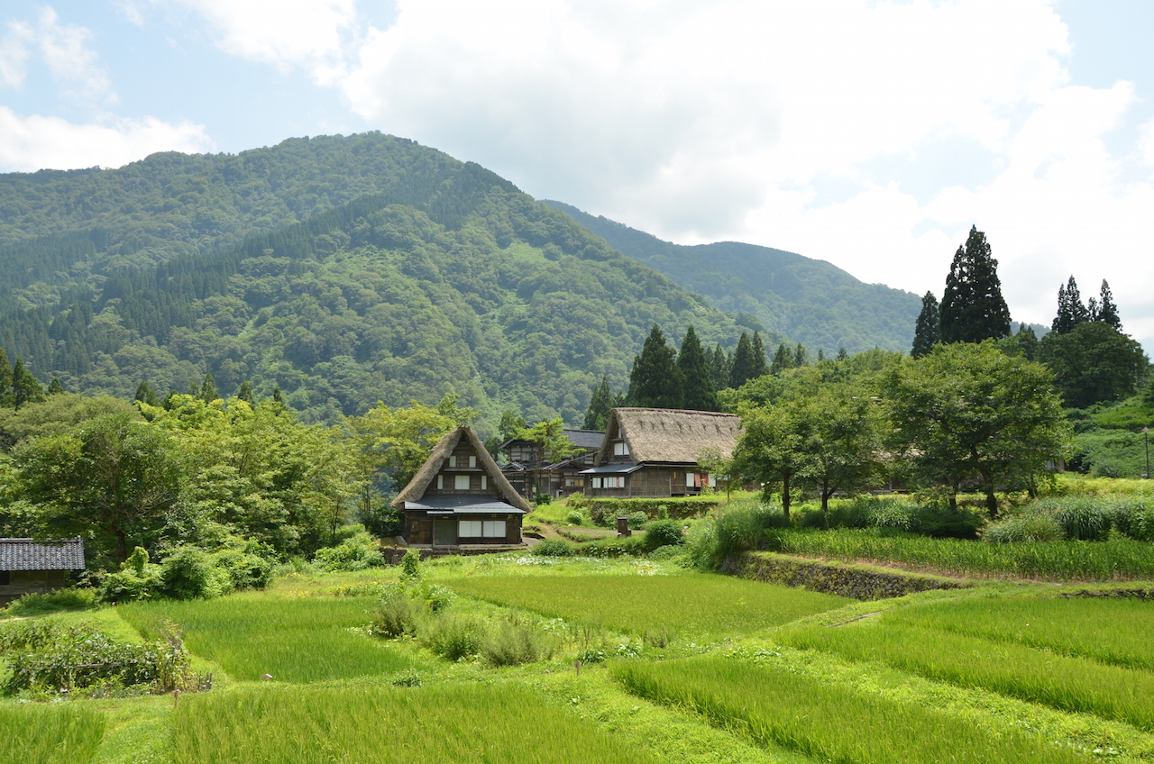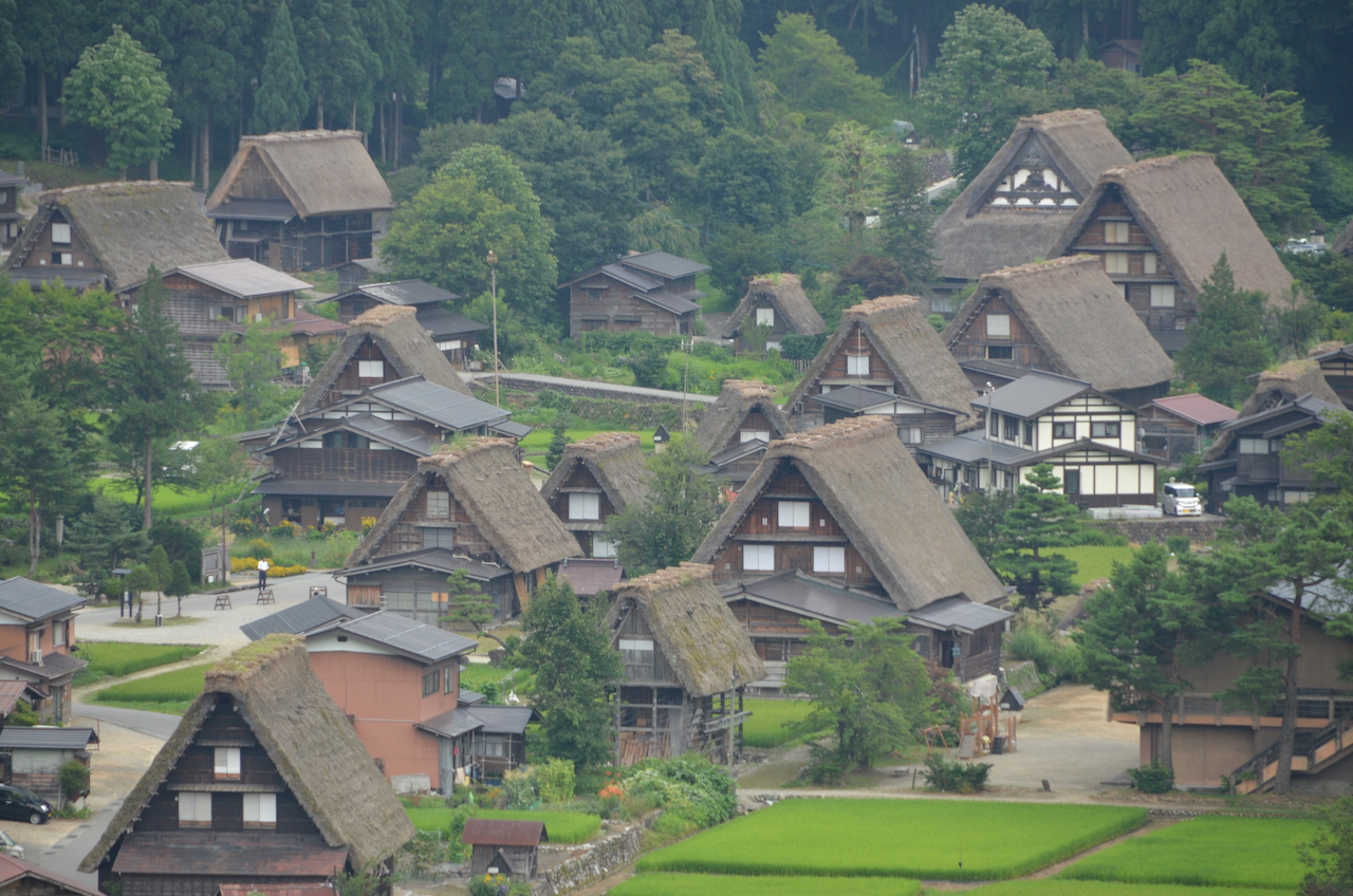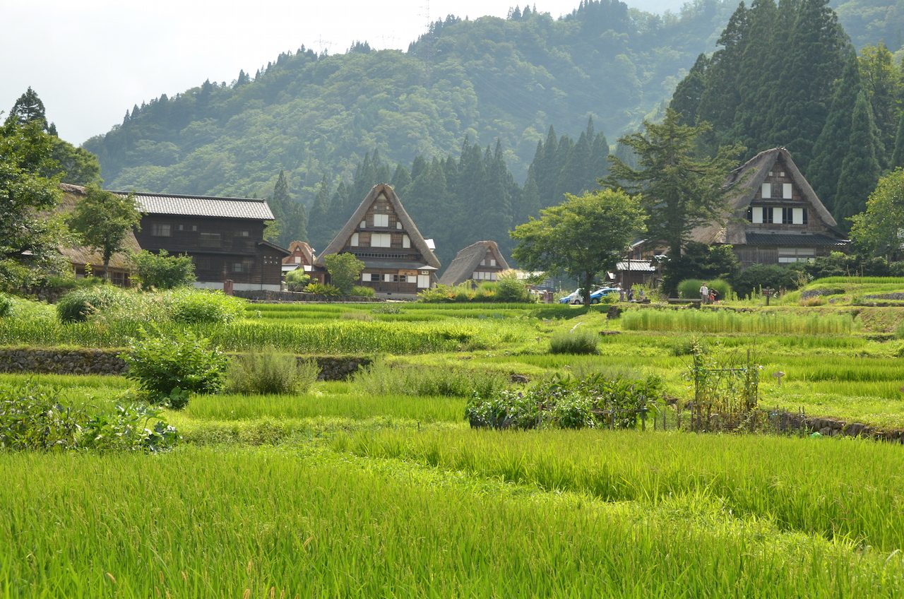 Las casas también son del estilo gassho-zukiri para soportar la cantidad de nieve que cae por esta zona en invierno, de hecho he visto algunas fotos en internet de este sitio nevado y son espectaculares. Pero ahora en verano, con la vegetación en su mejor momento no lo son menos.