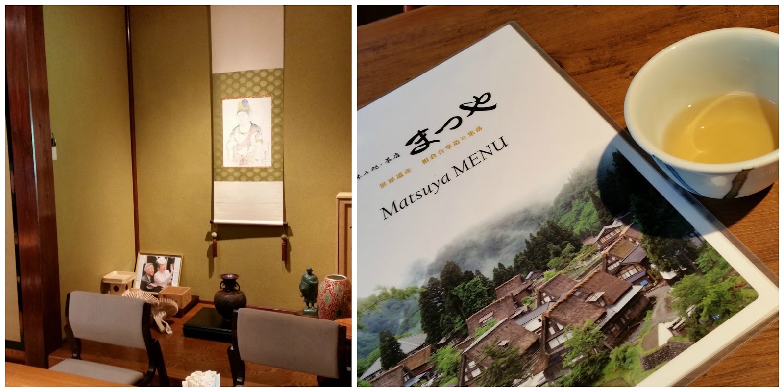 Decidimos comer en un restaurante que habíamos visto casi a la entrada de la aldea y acertamos totalmente!! El sitio se llama Matsuya,la comida estaba buenísima y probamos que hasta ahora no habíamos comido. Nos sentamos en un salón tradicional, con mesas bajas y dejamos nuestras zapatillas en la entrada.