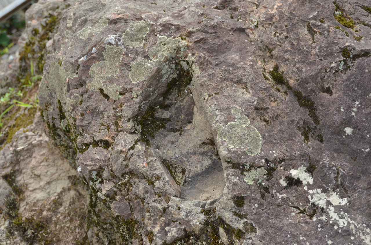 Siguiendo un precioso sendero entre las granjas gassho-zukiri, incluso entre la entrada a un templo, nos encontramos también con otra cosa famosa en Ainokura, la huella del Tegu en una piedra, aunque sinceramente no sé ni de que animal puede tratarse.