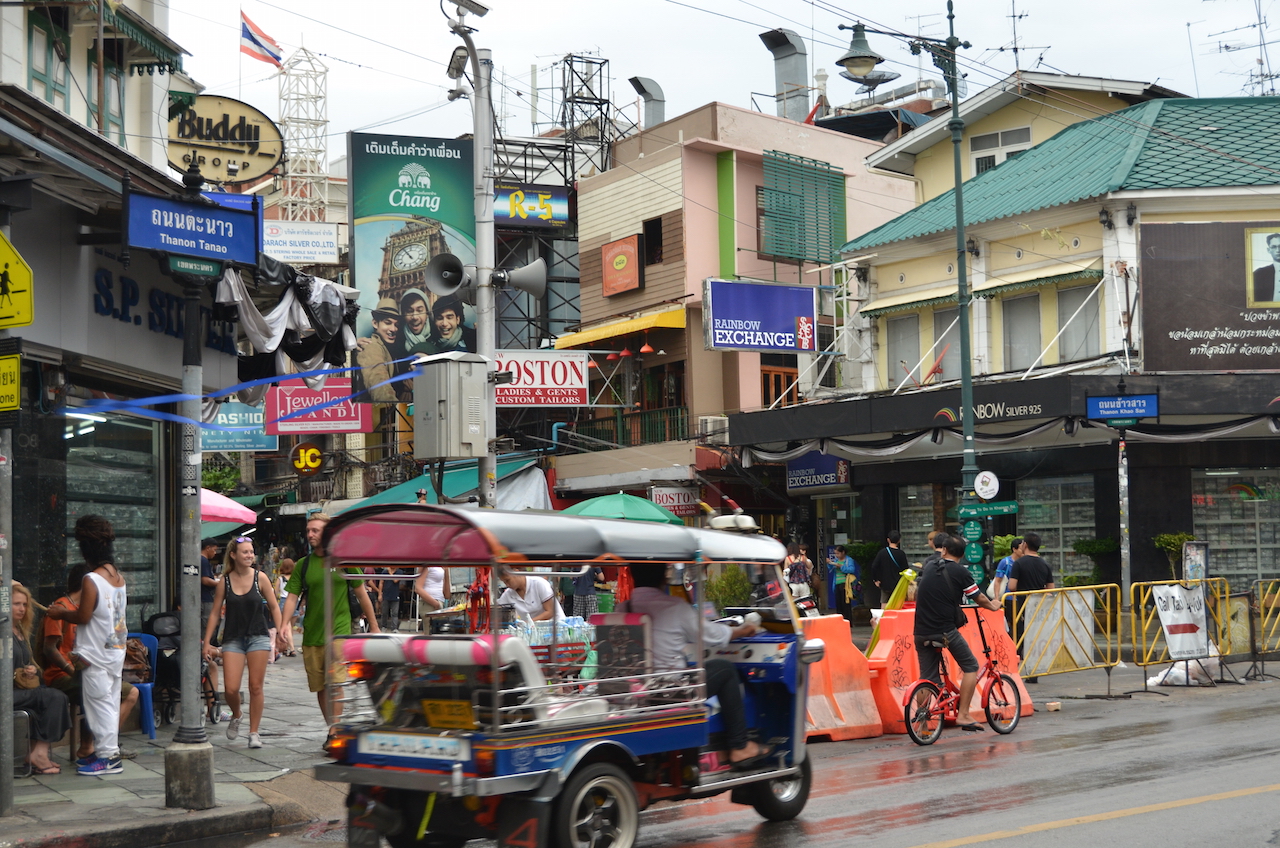 Khao San Road es hoy en día una calle llena de bares, tiendas de regalos, discotecas, lugares donde encontrar alojamiento y mucho, mucho ruido, además de gente de todo tipo, pero no siempre ha sido así. En esta calle se comerciaba con arroz en los años 80 y alguien abrió un establecimiento en el que se ofrecía alojamiento barato, se cree que de ahí partió todo.