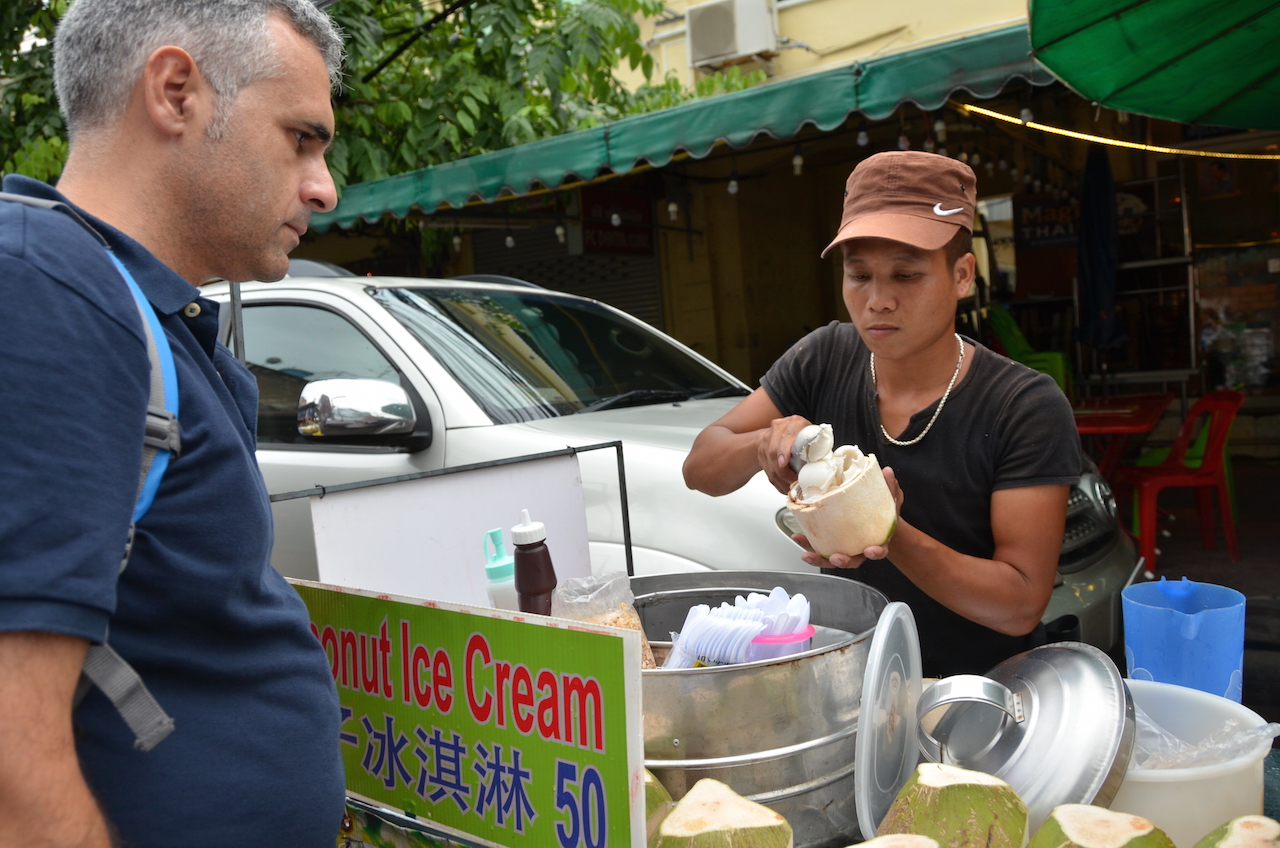 Probamos nuestro primer helado de coco por 50 THB que estaba buenísimo!!!