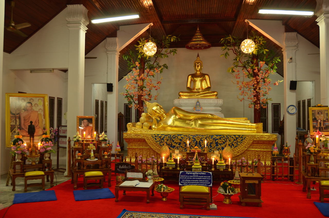 Muy cerca se encuentra un templo en activo que cuenta con un Buda reclinado bastante importante, así que allí que nos fuimos con nuestras bicicletas.