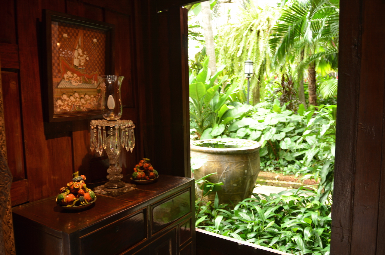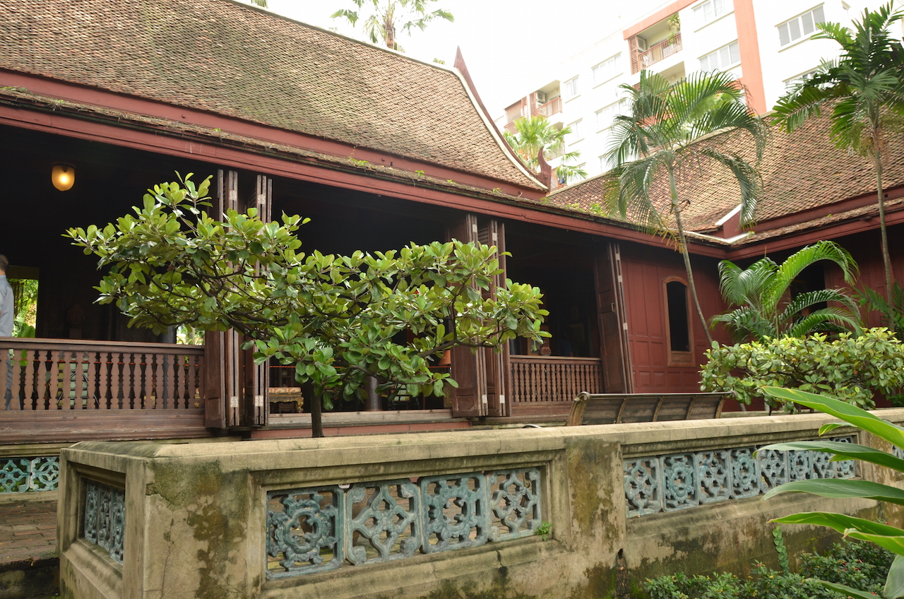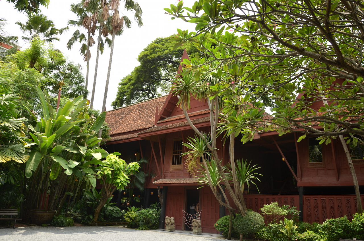 Caminando llegamos hasta la famosa casa de Jim Thompson, un arquitecto nacido a 1906 que sirvió al ejército americano en la Segunda Guerra Mundial y que fijó en Bangkok su residencia interesado por la seda y por otros tipos de tejidos. Creó una empresa y dedicó su vida a la expansión internacional de la seda tailandesa.