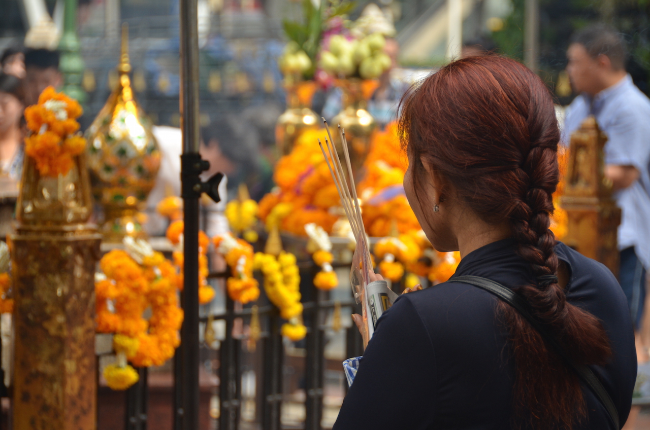El Santuario Erawan se ha convertido en un lugar de peregrinación donde miles de feligreses acuden a pedir suerte en sus negocios y en su vida en general.