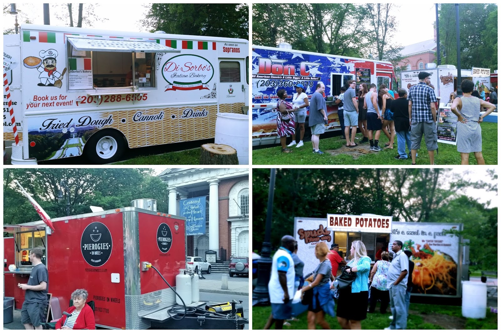 A las 7.30pm había un concierto en el Green con motivo de unas jornadas denominadas «Music on the Green» y allí había varios food truck que ofrecían diferentes tipos de comida, pierogies rellenos (que son como una especie de empanadillas pero con la masa más blandita), falafel, pizza, sandwiches….. La comida que ofrecen en este tipo de lugares no es una comida precisamente gourmet que digamos, pero mucha gente acude a ellos porque es más económico, sirven bastante rápido y en cincuenta metros tienes para elegir comida de diferentes nacionalidades. En este país es algo muy común, la gente no tiene apenas tiempo para comer y sale un momento de su oficina para comprar algo para saciar el hambre, por lo que los food trucks suelen situarse en lugares visibles cerca de los grandes centros de trabajo. Nosotros hoy hemos cenado unos pierogies rellenos que la verdad es que no estaban muy buenos que digamos, lo mejor ha sido el postre, un helado de Ben & Jerry’s, cuya fábrica se encuentra bastante cerca de aquí.