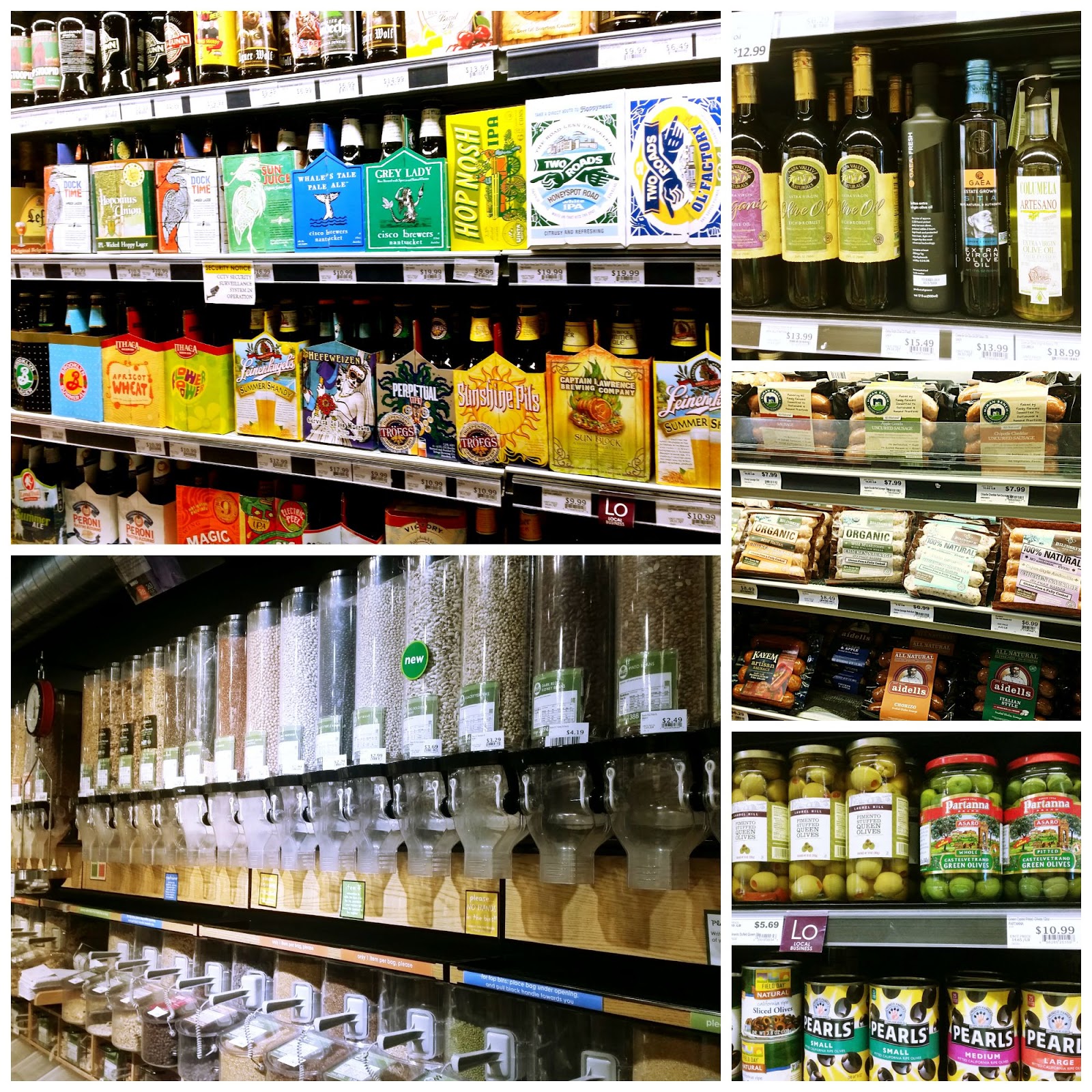 Muy cerca de allí está el supermercado Elm City Market, al que solemos ir con bastante frecuencia. Es un supermercado donde también tienen gran presencia los productos orgánicos, y muchas cosas ricas para elegir. Hay un apartado con surtidores individuales de frutos secos, cereales, semillas….., un pasillo con cervezas de muchos tipos y estados del país, expositores con gran variedad de salchichas y bacon, comida preparada…. Es más un supermercado donde hacer la compra del día a día, pero aún así, no es un supermercado barato que digamos, aunque aquí barato no hay nada, pero a mí personalmente me gusta más el tipo de clientes que acuden a éste que a las grandes superficies donde los precios son más bajos.