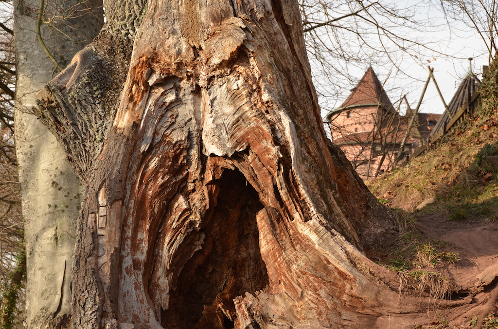 En su interior hay diferentes salas donde puedes conocer, a través de paneles ilustrativos, la historia del lugar, el cual fue destruido por los suecos en 1633 durante la Guerra de los Treinta Años, quedando abandonado durante 200 años, hasta que en 1899, Guillermo II de Hohenzollern, último emperador de Alemania y rey de Prusia, ordena su reconstrucción para convertirlo en museo y así convertirse en un símbolo de recuperación de la Alsacia por parte de Alemania. Es a partir del Tratado de Versalles, en 1919, cuando Francia recupera el poder de los bienes de la corona alemana y con ellos el castillo.