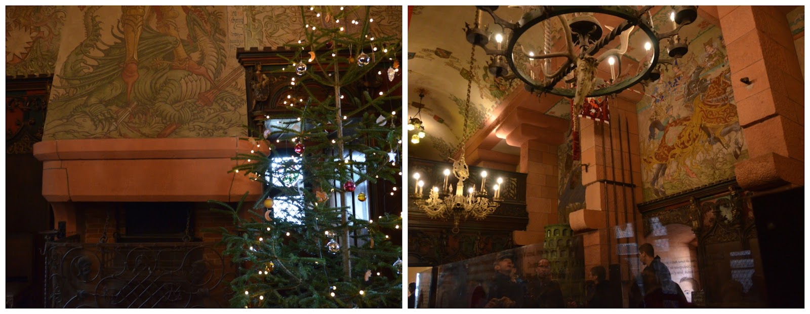 Aprovechamos para hacer un alto en el camino y tomarnos un vino caliente, en mi caso, y un zumo de manzana caliente, en el caso de Diego, así como una rebanada de pan de especias que estaba buenísimo.