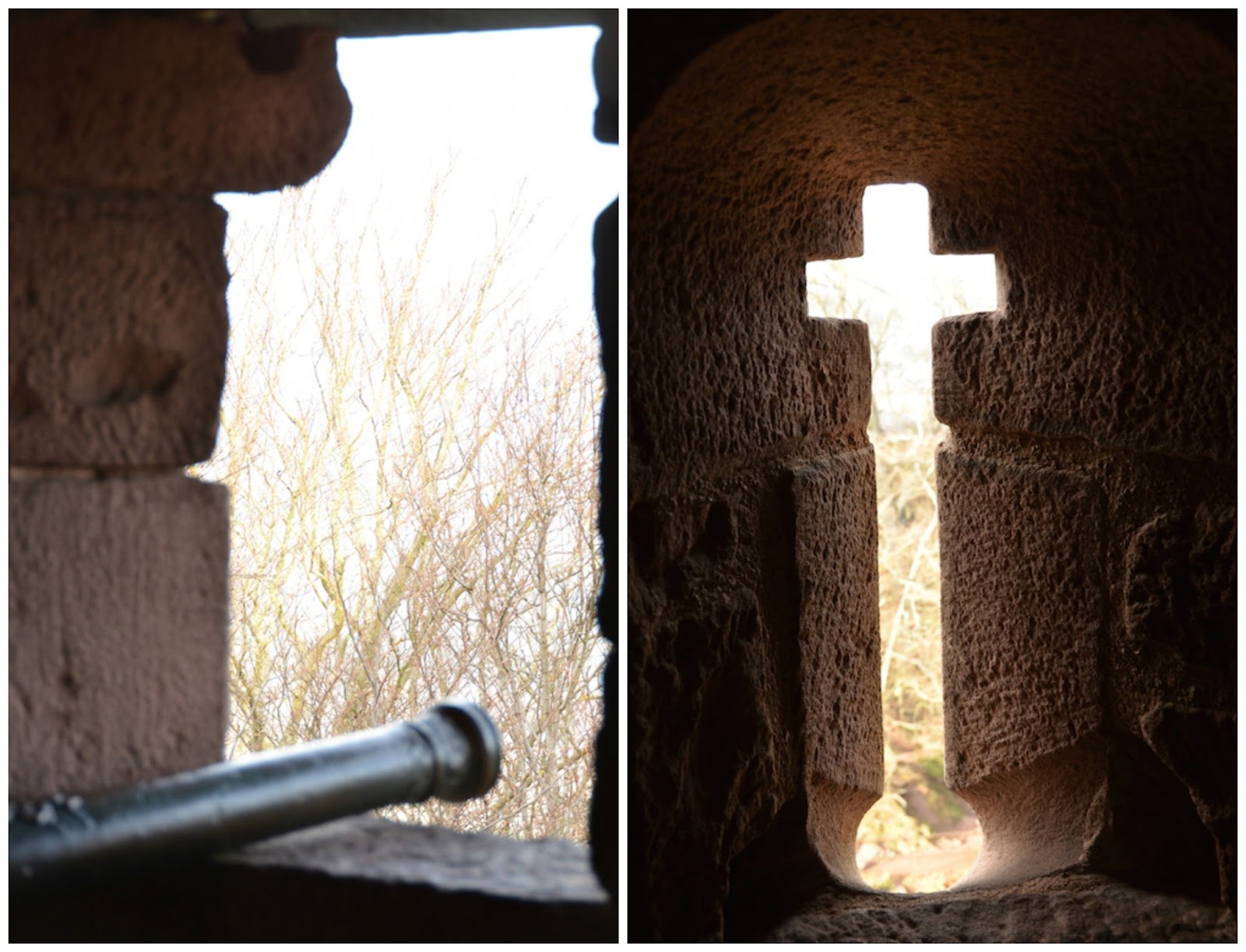 Pero los cañones no son lo más interesante para nosotros, es más destacable las espectaculares vistas que se obtienen desde sus ventanas, además tuvimos suerte y hacía buen día, un día con bastante visibilidad que permitía ver, a lo lejos y no tan lejos, algunos pueblecitos de la zona.