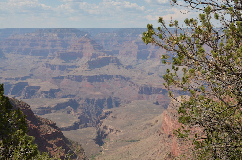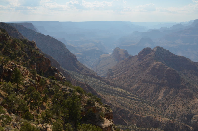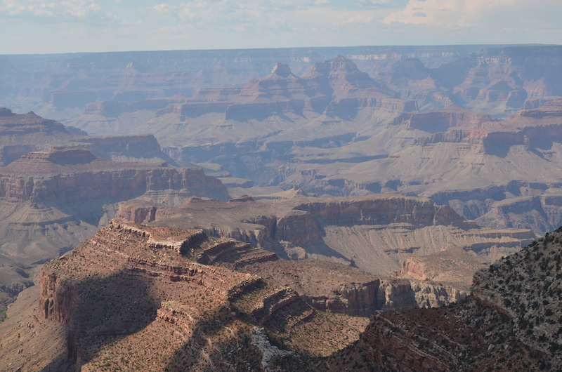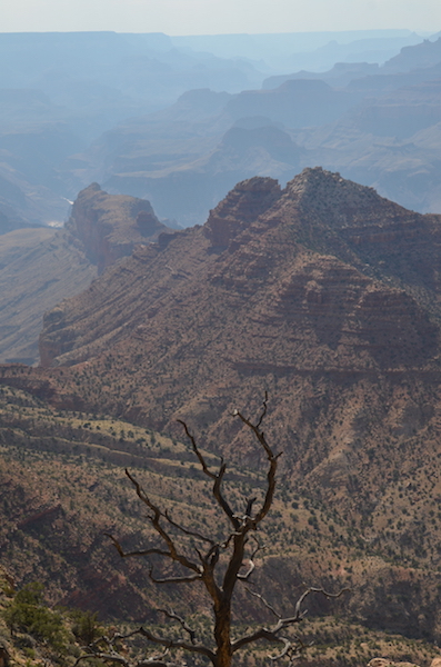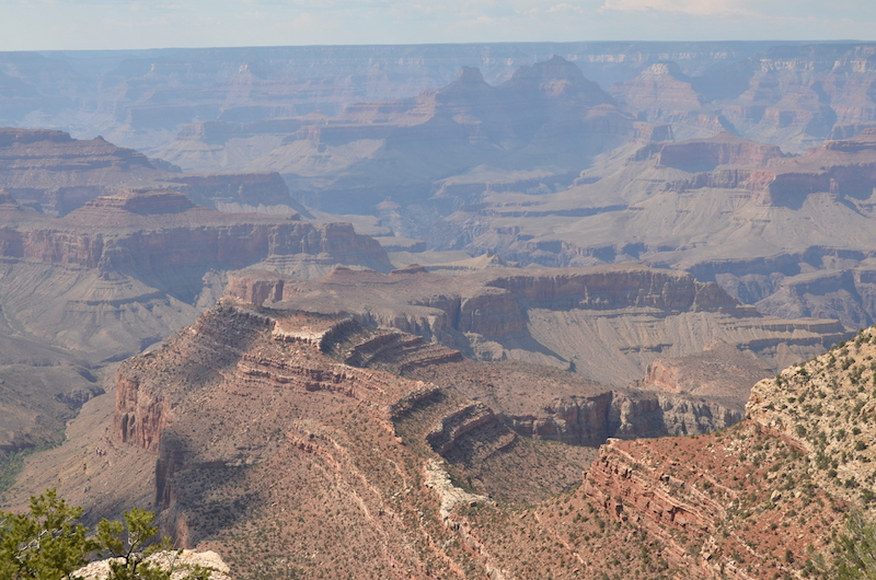 Continuamos hacia el este para parar en el mirador Desert View, desde el que hay una amplia vista del Gran Cañon así como del río Colorado el cual, tras una serie de curvas, cambia su rumbo hacia el norte.
