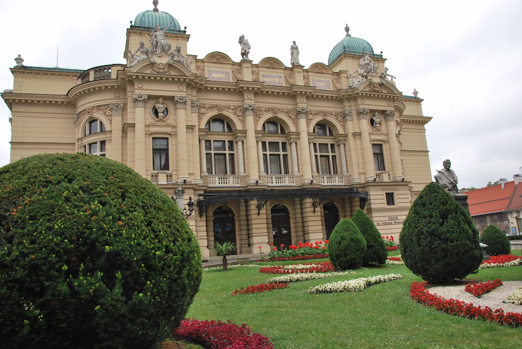 Desde aquí dimos un paseo para ver esta parte de la ciudad fuera del centro histórico, en la que también podemos encontrar lugares bastante interesantes como el Teatr Juliusza Slowackiego (Teatro Juliusz Slowacki), construido en 1893 según el modelo de la Ópera de París y de la de Viena.