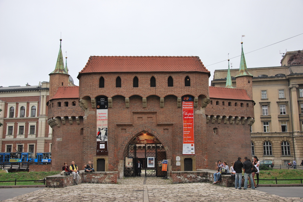 Nada más cruzar la puerta nos encontramos con otra edificación defensiva que servía como protección adicional a la Puerta de San Florián. Se trata de la Barbacana, construida en 1499.