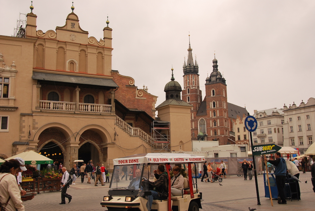 El primer lugar al que nos dirigimos fue a la plaza principal de la ciudad, la Rynek Glowny (Plaza del Mercado), el lugar al que conducen todos los caminos de la ciudad vieja. Es una de las mayores plazas medievales de Europa, de ello te das cuenta en cuanto empiezas a pasear por ella.