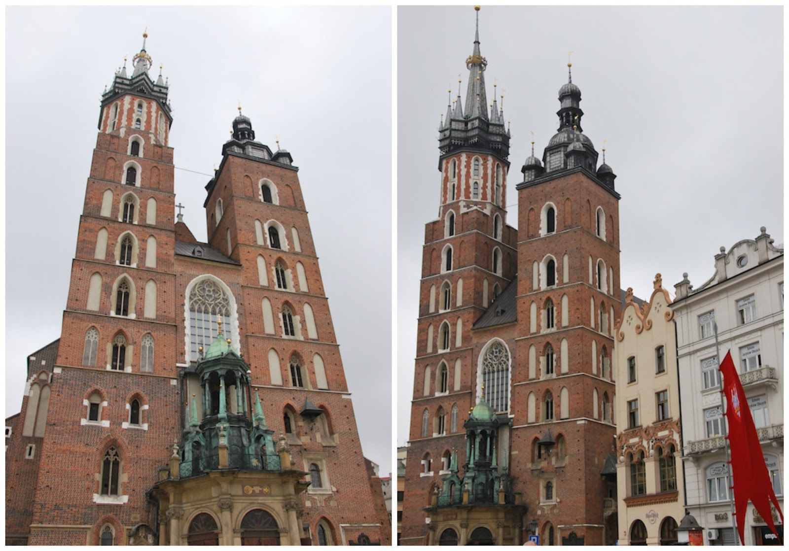 Pero si hay un monumento que destaca por encima de todos en esta inmensa plaza, es sin duda la impresionante Iglesia de Santa María con su fachada barroca y sus dos torres de diferente altura. Ha sido el símbolo de la arquitectura polaca durante siglos. El porqué de la diferencia de altura de las dos torres queda explicada en esta triste leyenda: