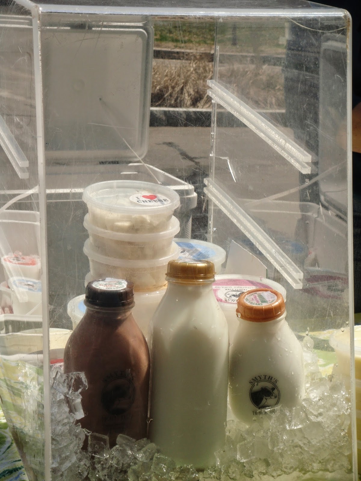 Los farmers market son mercados en los que los productores venden sus propios productos, los cuales garantizan en general que son orgánicos. En este mercado no había muchos puestos, vendían hortalizas, hierbas para cocinar, huevos, leche, carnes, miel y maple syrup (sirope de arce), del cual hemos comprado una pequeña botellita de uno que el productor nos ha indicado que es el de mejor calidad, la verdad es que nos ha dado a probar y estaba buenísimo.