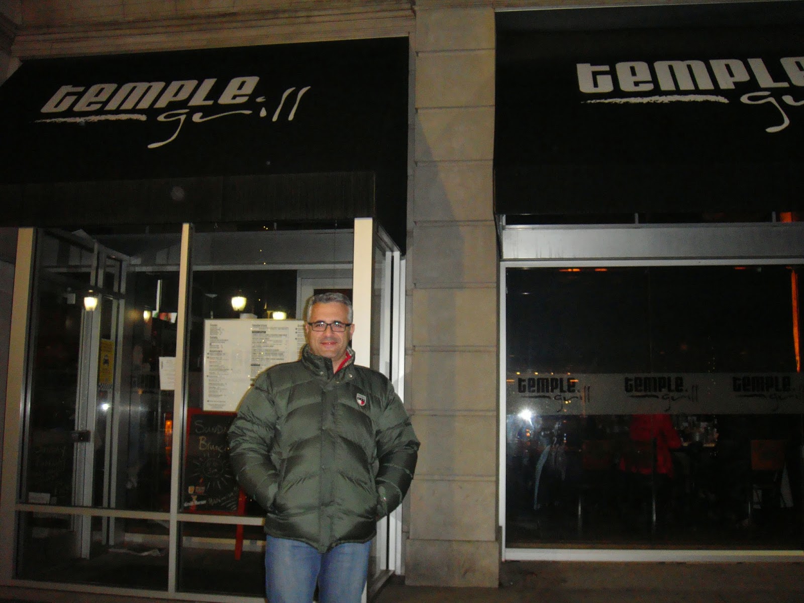 Hemos ido a cenar a Temple grill, un típico bar americano que se encuentra en 152 Temple St, de ahí su nombre, donde preparan buenos sándwiches, yo he pedido un Angus Roast Beef y Diego un Shredded BBQ Pork, acompañado con unas patatas en forma de rejilla y un pepinillo. Ambos estaban muy buenos, aunque ponen tanta cantidad que es difícil terminarse todo.