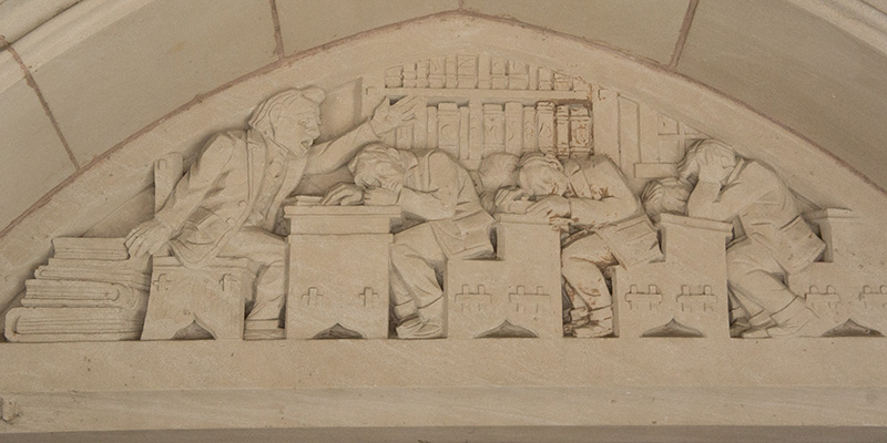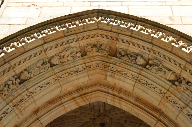 En la puerta del Branford College que se encuentra en la base de la Harkness Tower, también hay buena muestra de esculturas de diversa índole.
