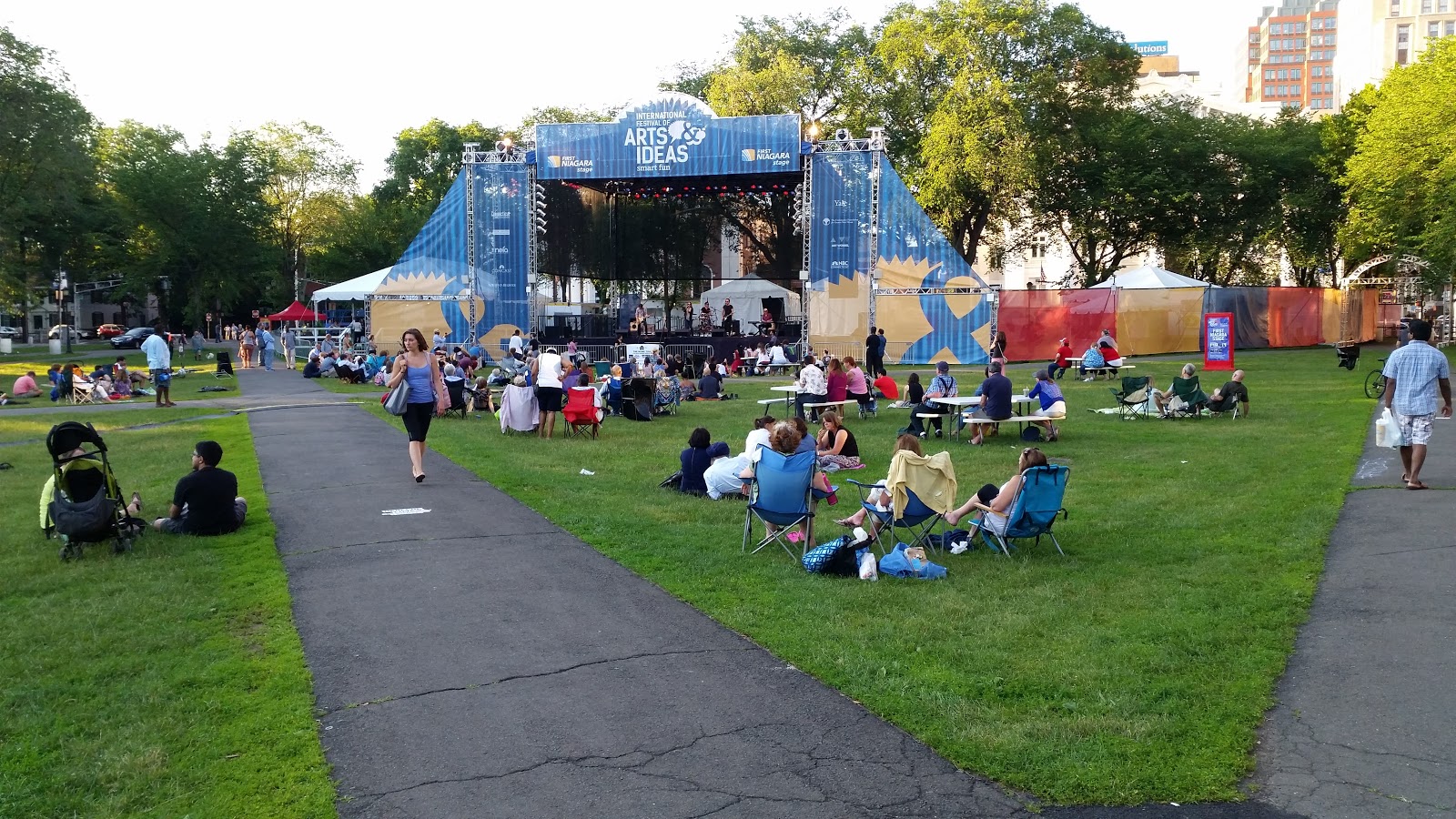 Cuando ha salido Diego de trabajar, nos hemos ido a dar un paseo y a ver qué concierto había hoy en el Green. No había mucha gente, hemos estado un rato escuchando el grupo que actuaba hoy.