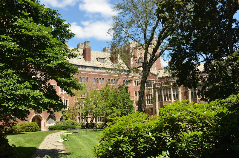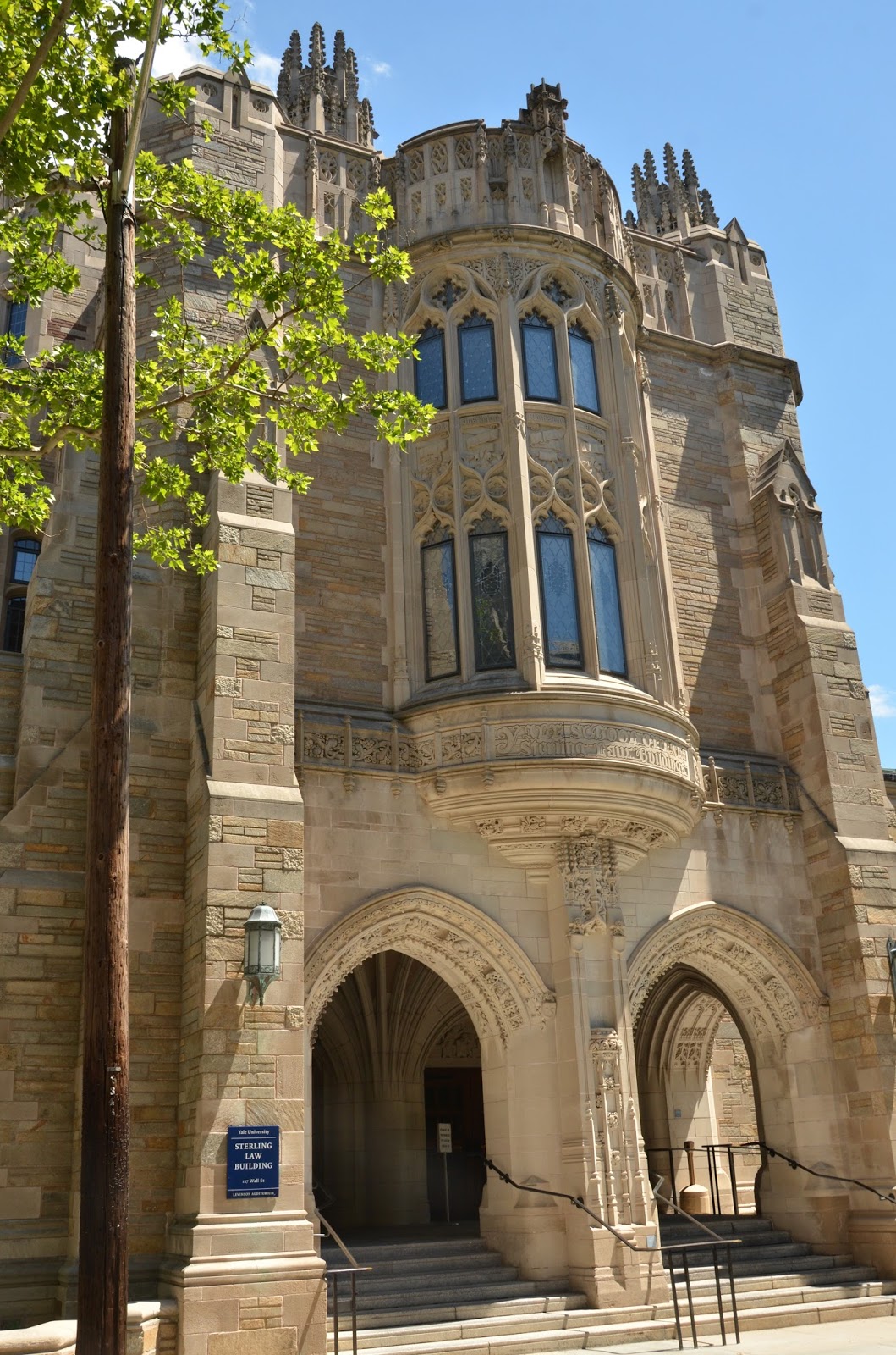 Al lado de la Biblioteca se encuentra otro de los edificios más famosos de esta Universidad, La escuela de Derecho, donde cuentan que se conocieron los Clinton y donde han estudiado alguno de los más prestigiosos abogados del país. En su fachada hay muchas esculturas «graciosas» que el arquitecto quiso representar allí, así se encuentra la imagen de una prostituta, de un profesor durmiendo a su clase con sus explicaciones, un policía, un ladrón, y por supuesto, la mascota de la universidad, un bulldog que se encuentra en lo más alto del edificio.