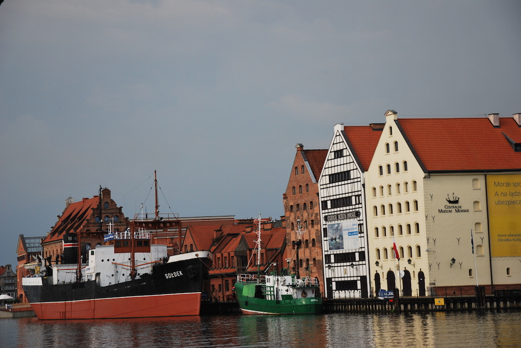 Enfrente, al otro lado del río Motlawa, se encuentra atracado el barco mercante MS Solder, que fue el primer barco construido en los astilleros de Gdansk tras la Segunda Guerra Mundial. Es un museo que se puede visitar, aunque nosotros no lo hicimos ya que decidimos adentrarnos nuevamente a callejear por el centro histórico de la ciudad, el cual es en sí mismo un monumento.