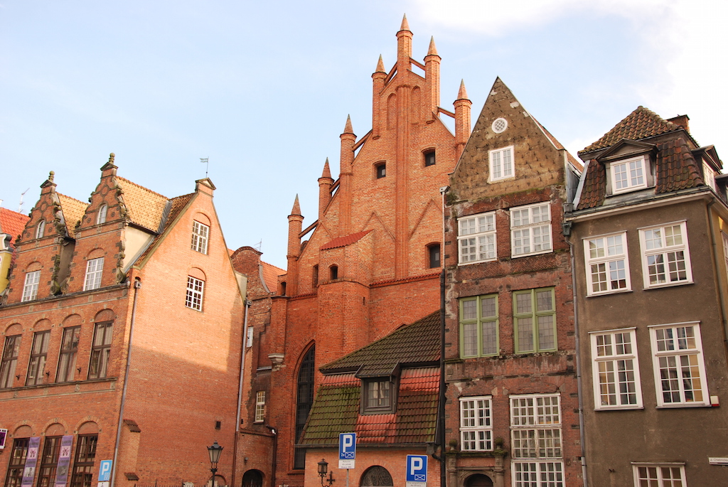 Aquí también encontramos la iglesia más antigua de la ciudad, la Iglesia de Santa Catalina. Fue fundada en el siglo XIII sobre un templo de madera y en el siglo XIV se sustituyó por el actual edificio gótico. En su sótano se encuentra la tumba del astrónomo mencionado anteriormente Johannes Hevelius.