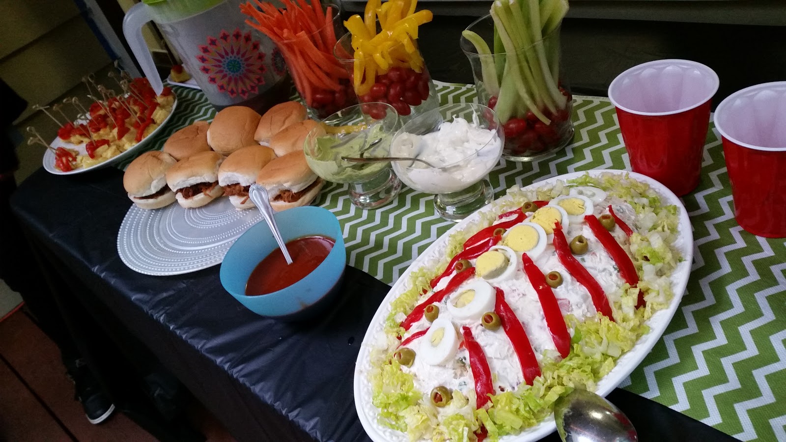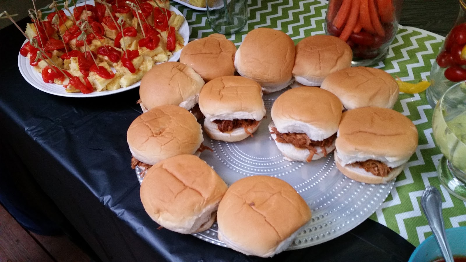 Olga había preparado unos vegetales con guacamole y alioli, unas tortillas de patata con pimientos asados, que estaban muy buenas por cierto, unos panecillos rellenos de pulled pork y una ensaladilla rusa, un poco intentando mezclar la gastronomía española y la americana.
