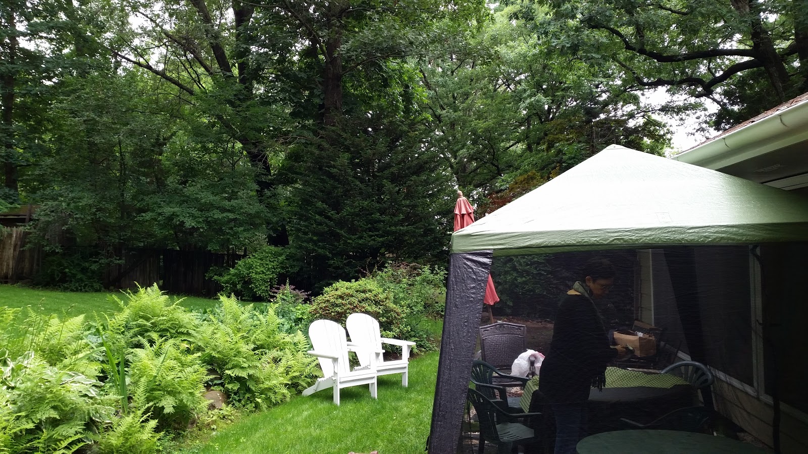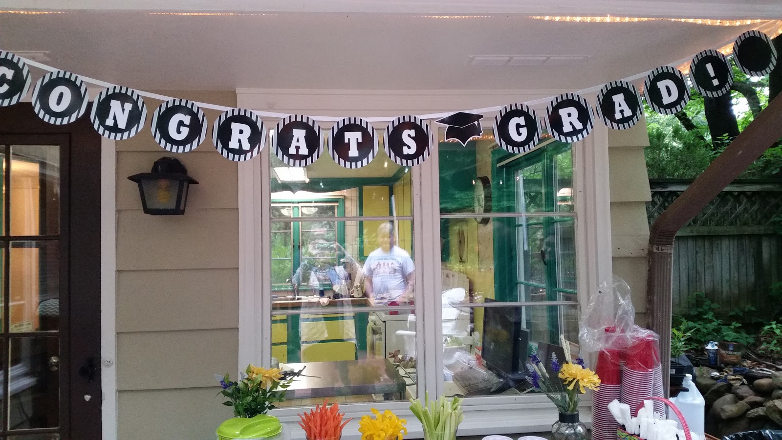 Ana, otra madrileña que lleva más de veinte años en Estados Unidos, y su marido Oliver, un francés muy gracioso, nos han recogido en casa a las 5pm y hemos ido hasta Hamden, a 10 minutos en coche de New Haven, donde se encuentra la casa de Olga y su familia. La casa es una de las típicas americanas, de madera, con un porche y un garaje para el vehículo. Sin duda lo mejor de la casa es el jardín, donde Olga había preparado todo para la fiesta, mesas con flores, velas, y aperitivos muy ricos, y neveras con diferentes tipos de bebida. En la fiesta no éramos muchos, algunos amigos suyos, Ana y su marido y nosotros, además de la familia de Olga, claro. Los americanos han cenado y enseguida se han marchado, así que nos hemos quedado tres españoles, un francés y un americano, vamos de chiste total, jejejeje, tomando cervezas y comiendo la tarta de graduación bajo la carpa que había preparado el marido de Olga, pues aunque ha hecho mejor día que ayer, la lluvia también ha querido hacer acto de presencia.