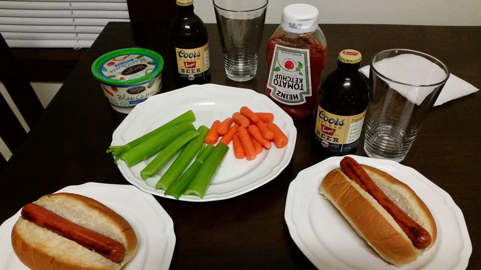 Para cenar nos hemos preparado unos vegetales (apio y zanahoria) para «dipear» con crema de queso azul y un perrito caliente, acompañado de una cerveza Coors que hemos comprado hoy. Cuando la he visto en el supermercado me he acordado de dónde me tomé la primera, fue el verano pasado en Flagstaff, un pueblo en el estado de Arizona donde paramos a media tarde, nos sentamos en una pizzería y allí Cristina y yo nos bebimos una y los chicos una jarra de una cerveza local.