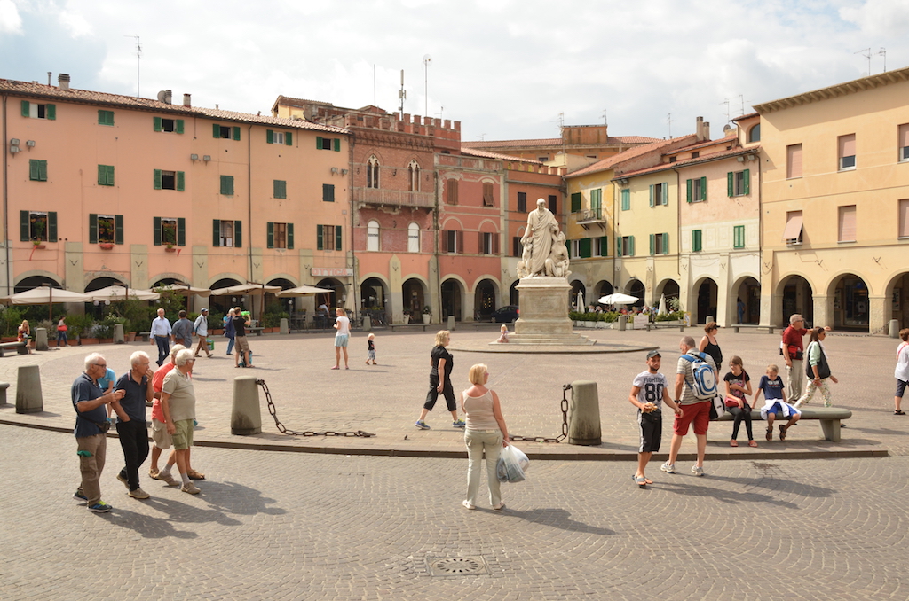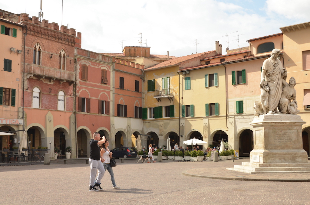 En la plaza también se encuentra la estatua del duque Leopoldo II de Lorena, apodado el «Canapone de Grosseto».