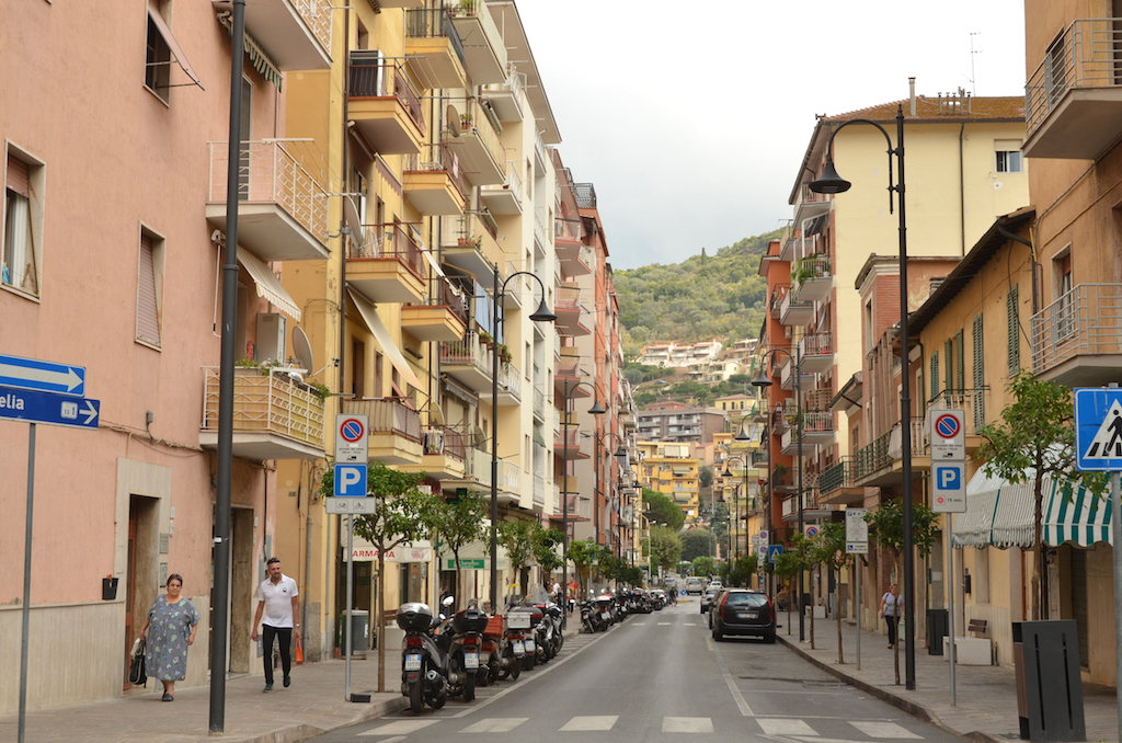 Damos un paseo por sus solitarias calles empinadas, llegamos a la Piazza Garibaldi donde se encuentra una estatua en su honor, además de la Iglesia de Santa María de la Asunción.