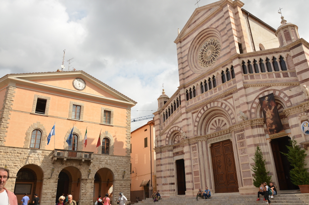 Es fácil llegar hasta la plaza donde se encuentra la Catedral de San Lorenzo o catedral de Grosseto. Es un edificio de mármol en dos colores rojo y blanco, una típica construcción de esta zona. En la fachada principal destacan las estatuas de los cuatro evangelistas y un gran rosetón.